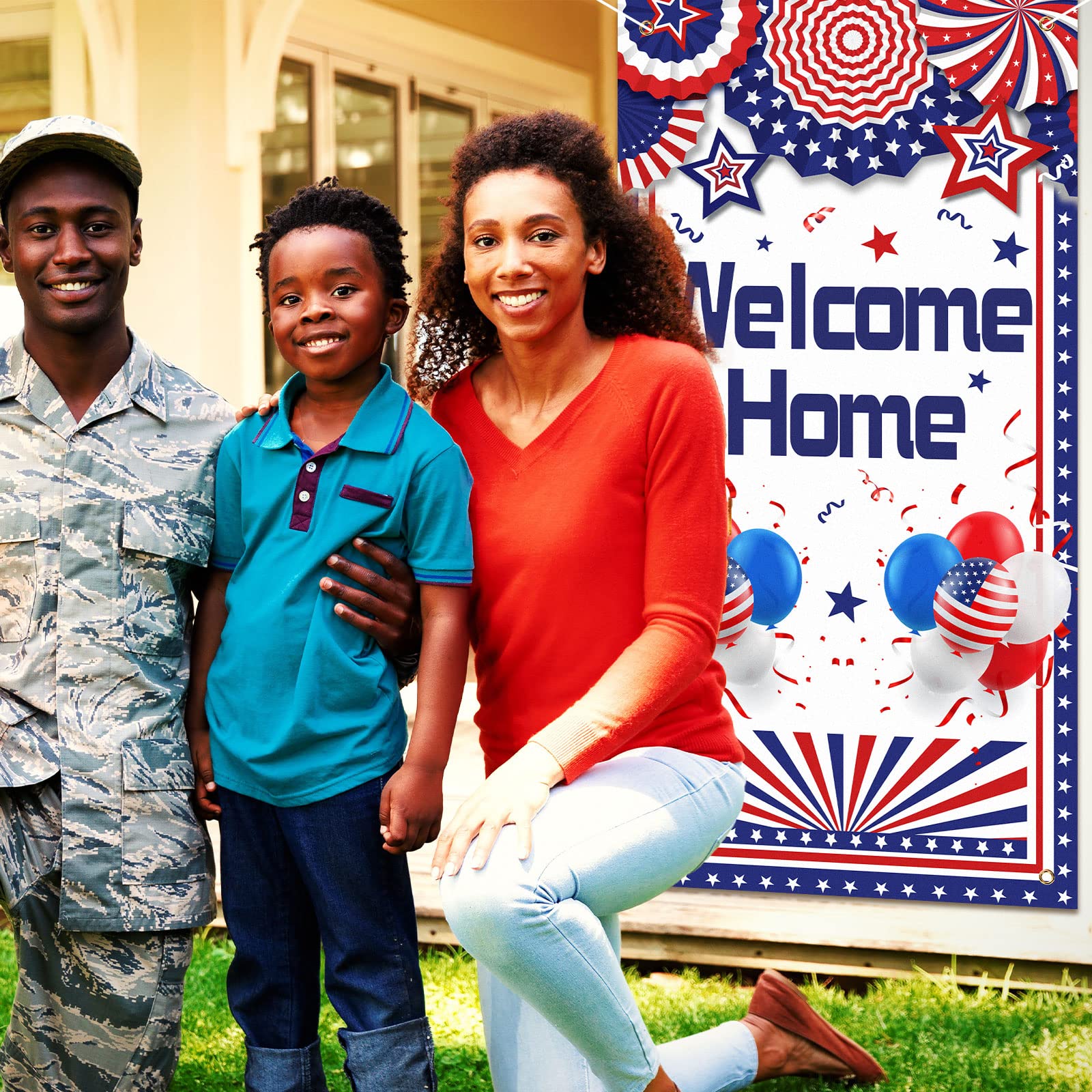 Features: The deployment returning backdrop is washable, not easy to fade or tear, you can simply wash after use and prepare for your deployment returning party, and is also applicable and useful in your daily life. Our deployment returning door decoration door cover is crafted with exquisite workmanship, so that you can choose it as a thoughtful gift for your close friends, family members, colleagues and neighbors who are going to celebrate their deployment returning parties, this present will help them a lot. Specifications: Material: polyester Color: mainly red white and blue Size: approx. 180 x 90 cm/ 5.91 x 2.95 ft Package includes: 1 x Deployment returning party decorative door cover Notes: Manual measurement, please allow slight errors on size. The color may exist a slight difference due to different screen displays. There may exist the risk of twine, please be careful with small kids
