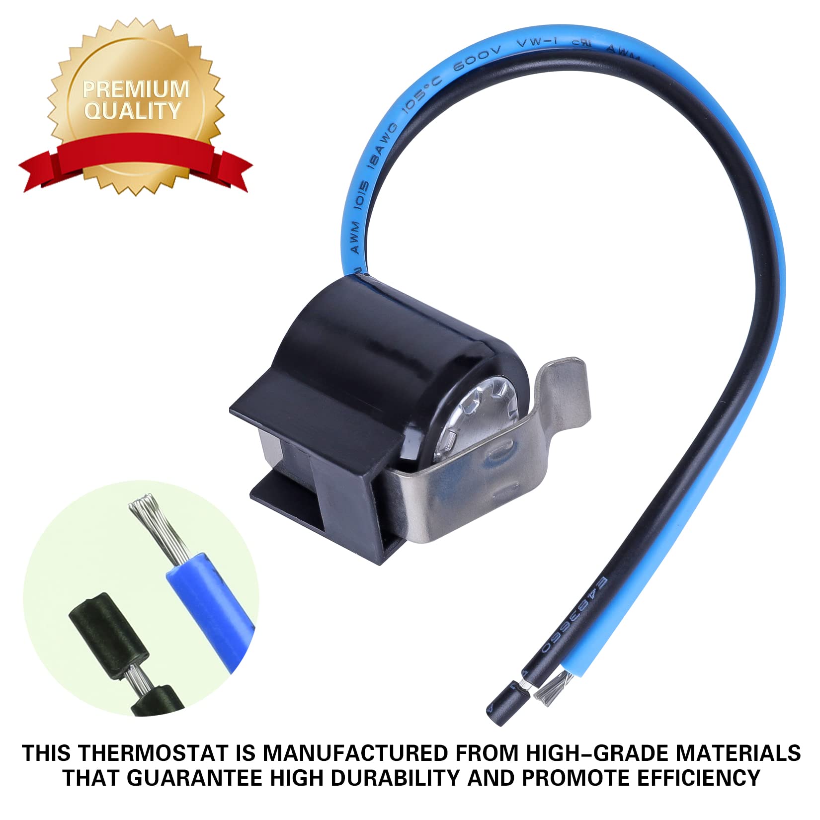 PREMIUM QUALITY refrigerator thermostat: The replacement part is made from durable high-quality material and well-tested by the manufacturer - Meet OEM standards - Ensure long lasting and effective operation. The function of the defrost bi-metal thermostat is to clip onto the evaporator and protect your evaporator from overheating during the defrost cycle. This part fixes the following symptoms: Fridge too warm | Freezer not defrosting | Freezer section too warm | Fridge too cold