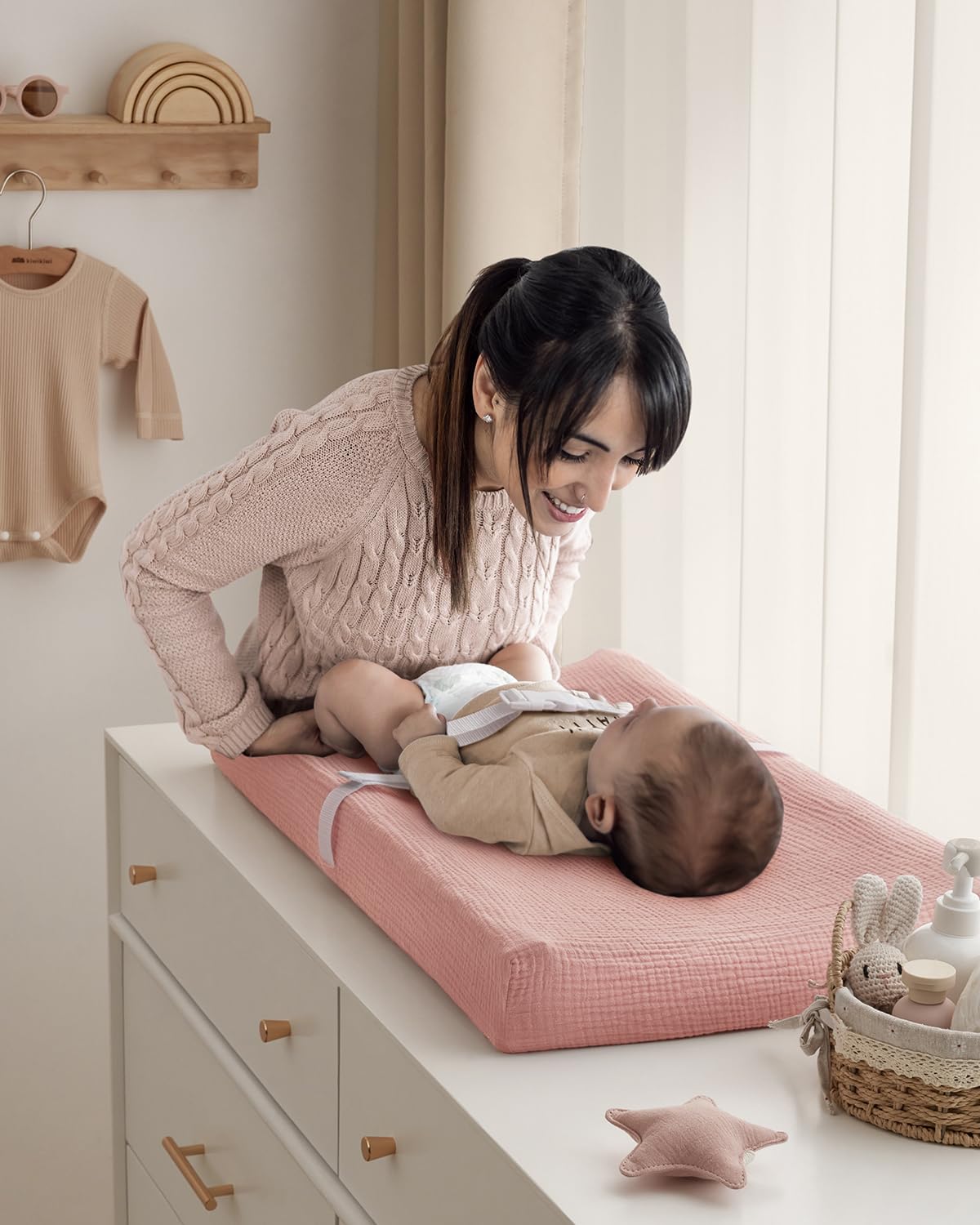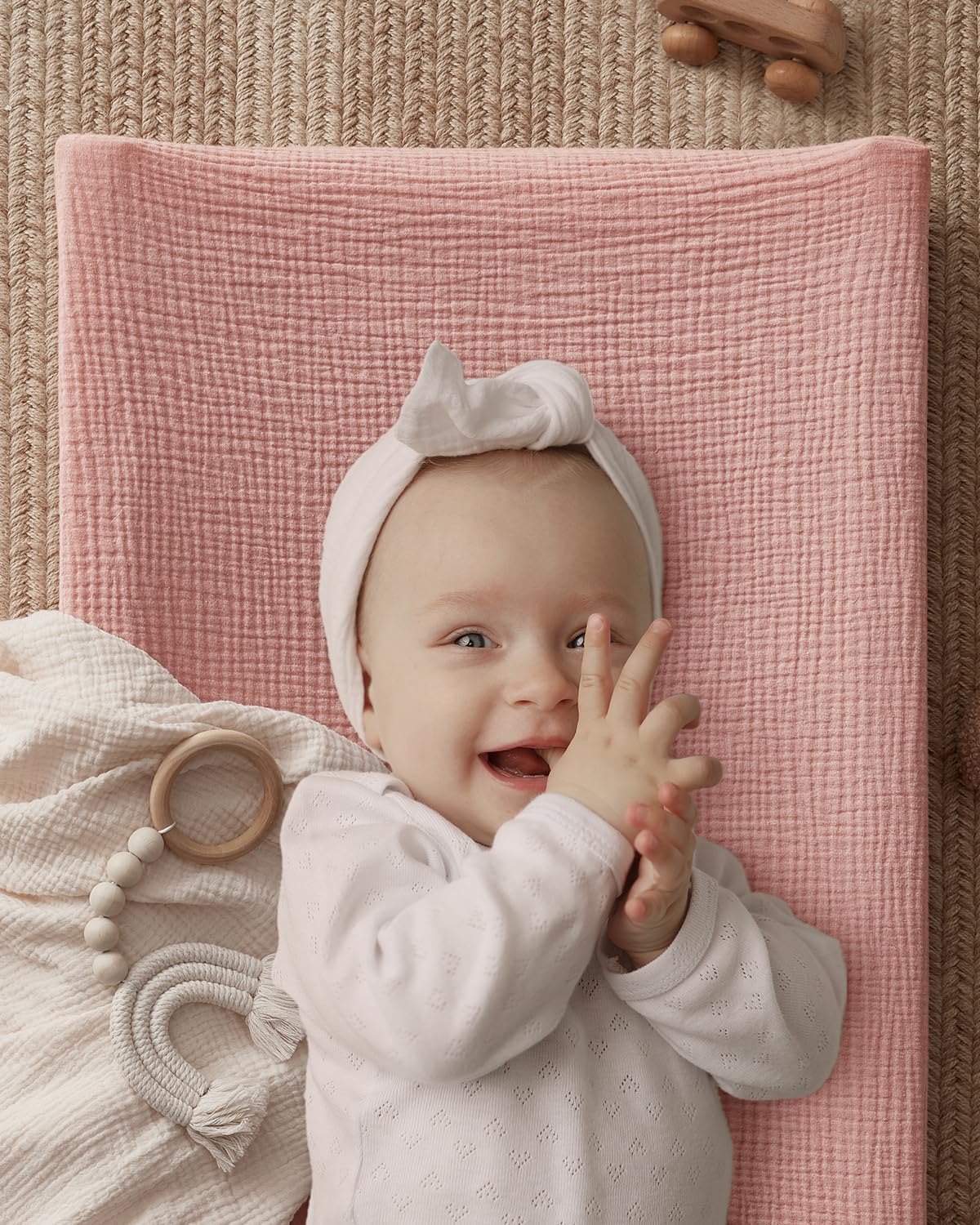 Muslin Cotton: Our changing pad covers girl are made of muslin cotton, with a smooth surface and comfortable touch,features a light drapability and rigidity, suitable for your baby's delicate skin
