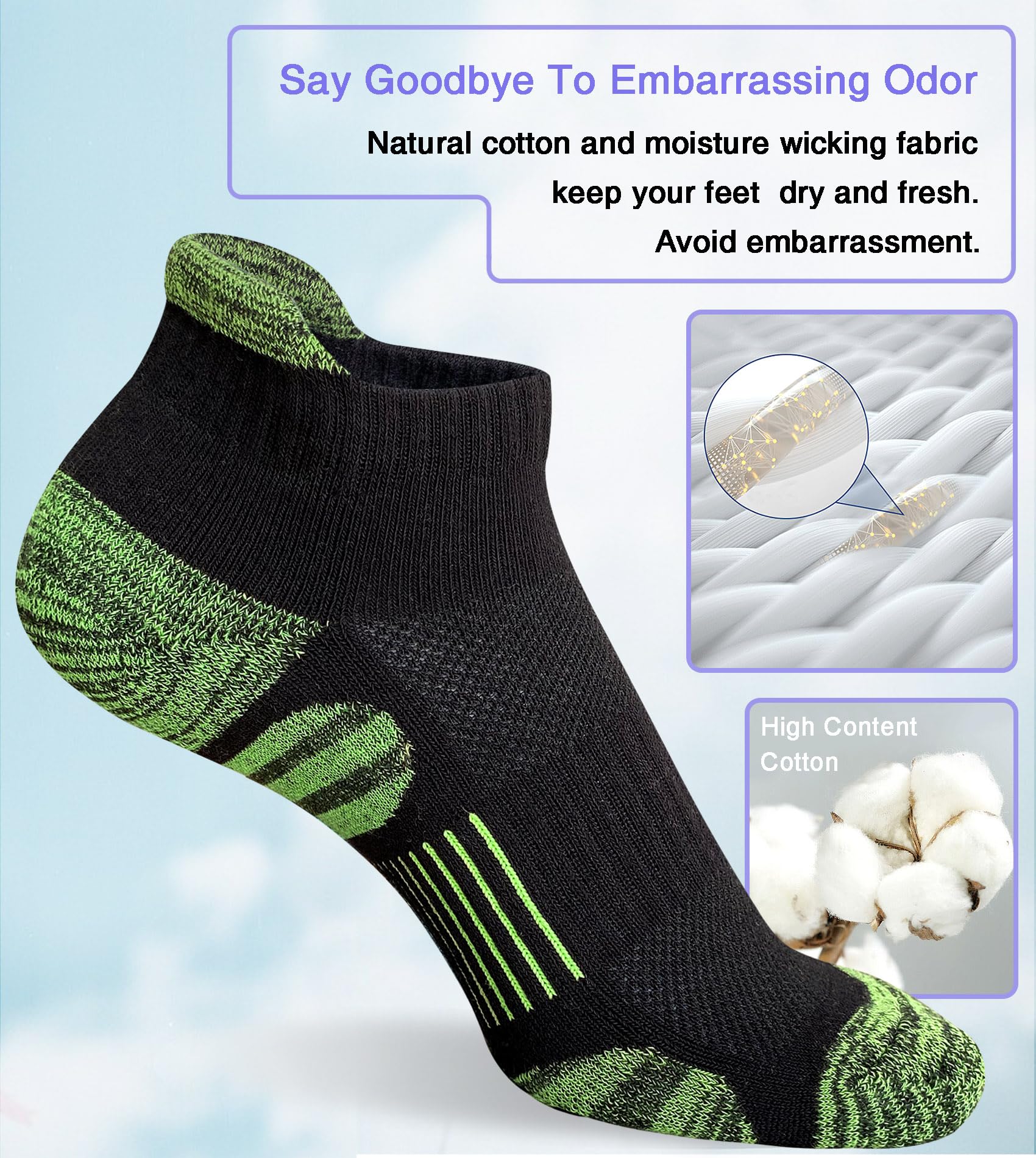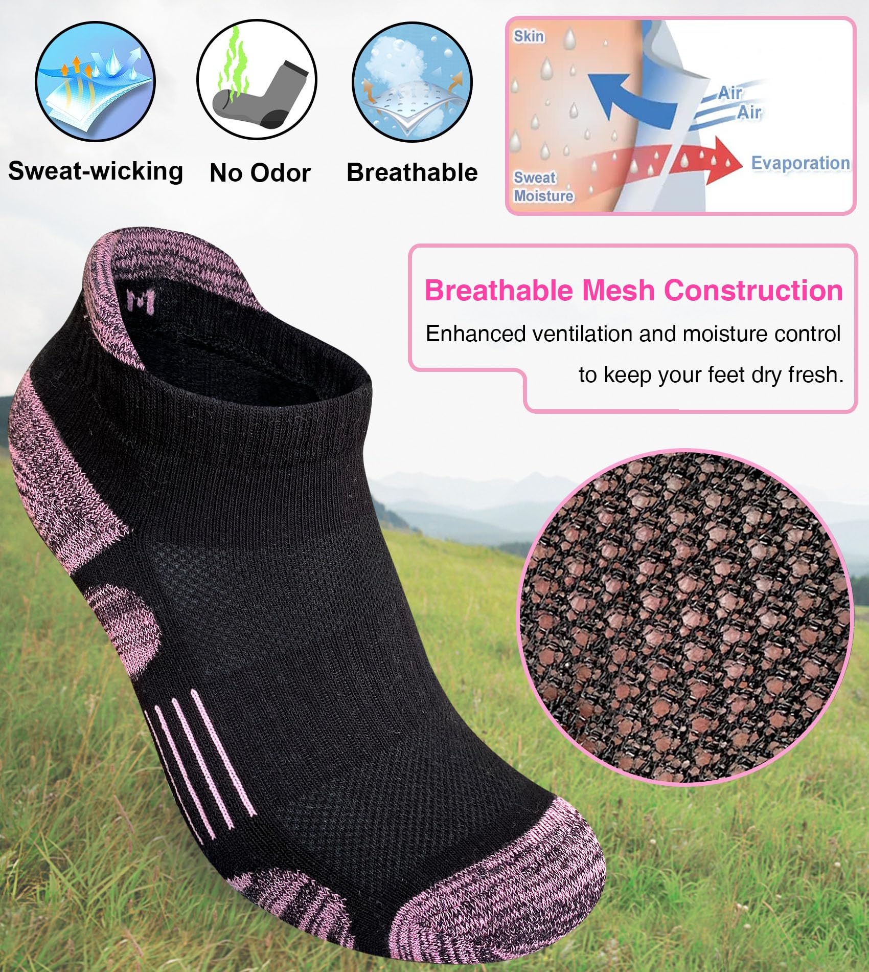 【Moisture Wicking Cotton Socks】Made of high quality combed cotton and moisture control fibers for extra softness and comfort while retaining sweat-wicking properties. Breathable mesh helps to ventilate release the heat, keep feet dry and fresh whole day