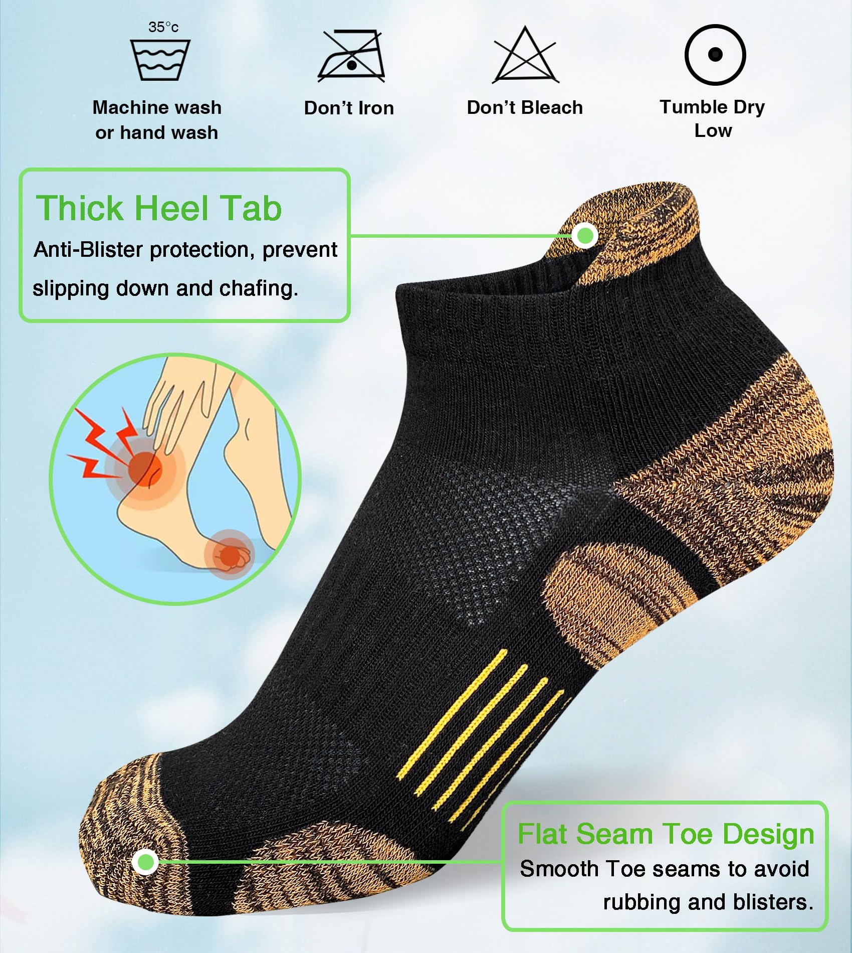 【Anti-blister Socks for Women】The heel tab supplies extra comfort and protection, the padding across the achilles tendon, prevents blisters on the ankle and heel. Lycra elastic cuff can lock the ankle and promise socks non-slip, ensure no blisters