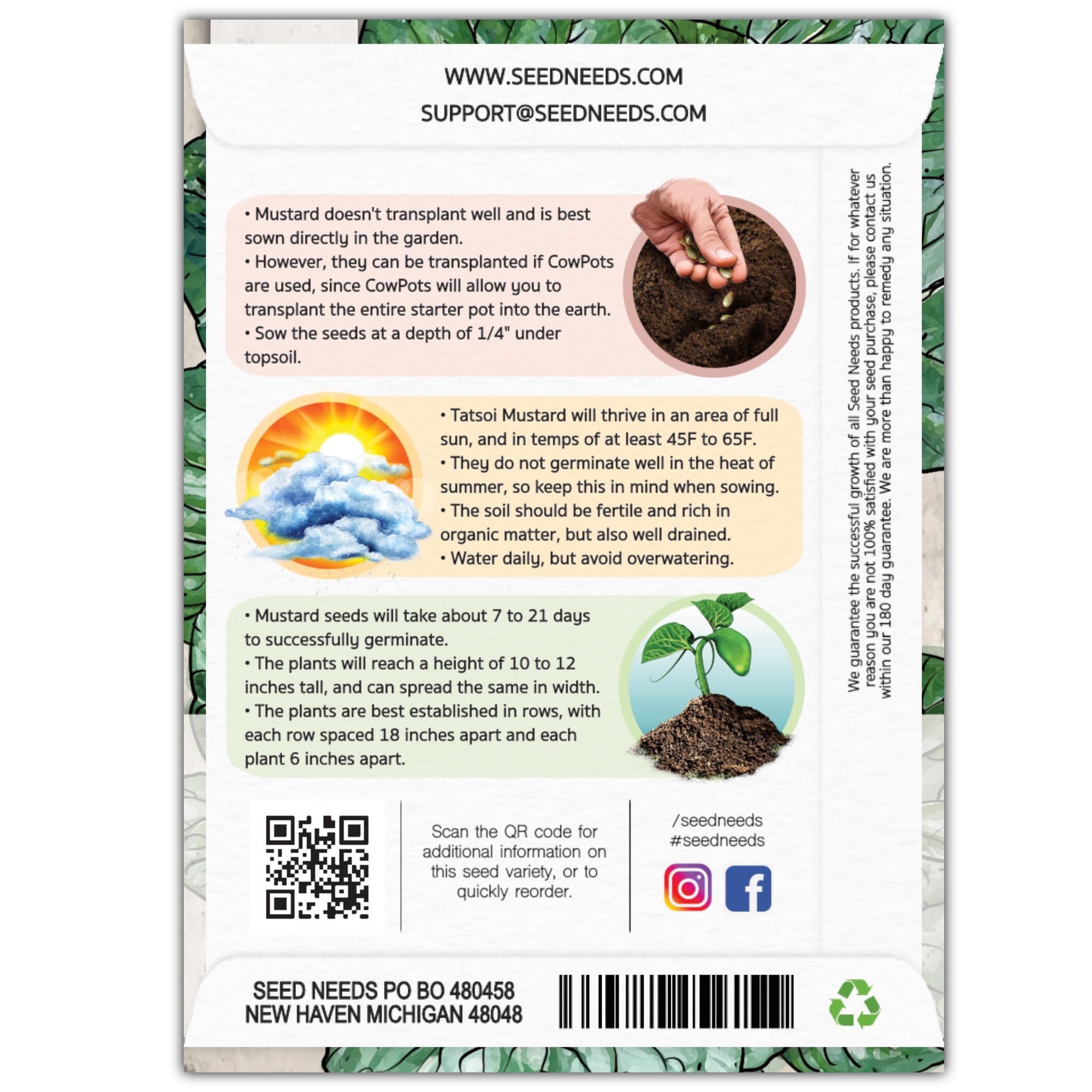 Growing Conditions: Tatsoi thrives in cool weather, making it an ideal crop for early spring or fall gardens. It's relatively hardy and can tolerate light frost, which can even enhance its flavor. This plant prefers full sun to partial shade and well-drained soil.