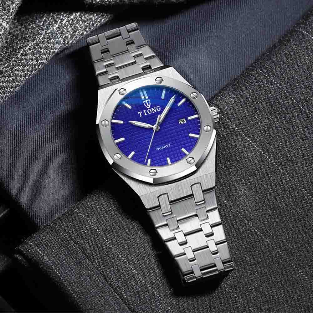 Silver Blue Business Watch: This quartz watch is different from other ordinary styles. Its unique pointer design makes the watch look more fashionable and commercialized.