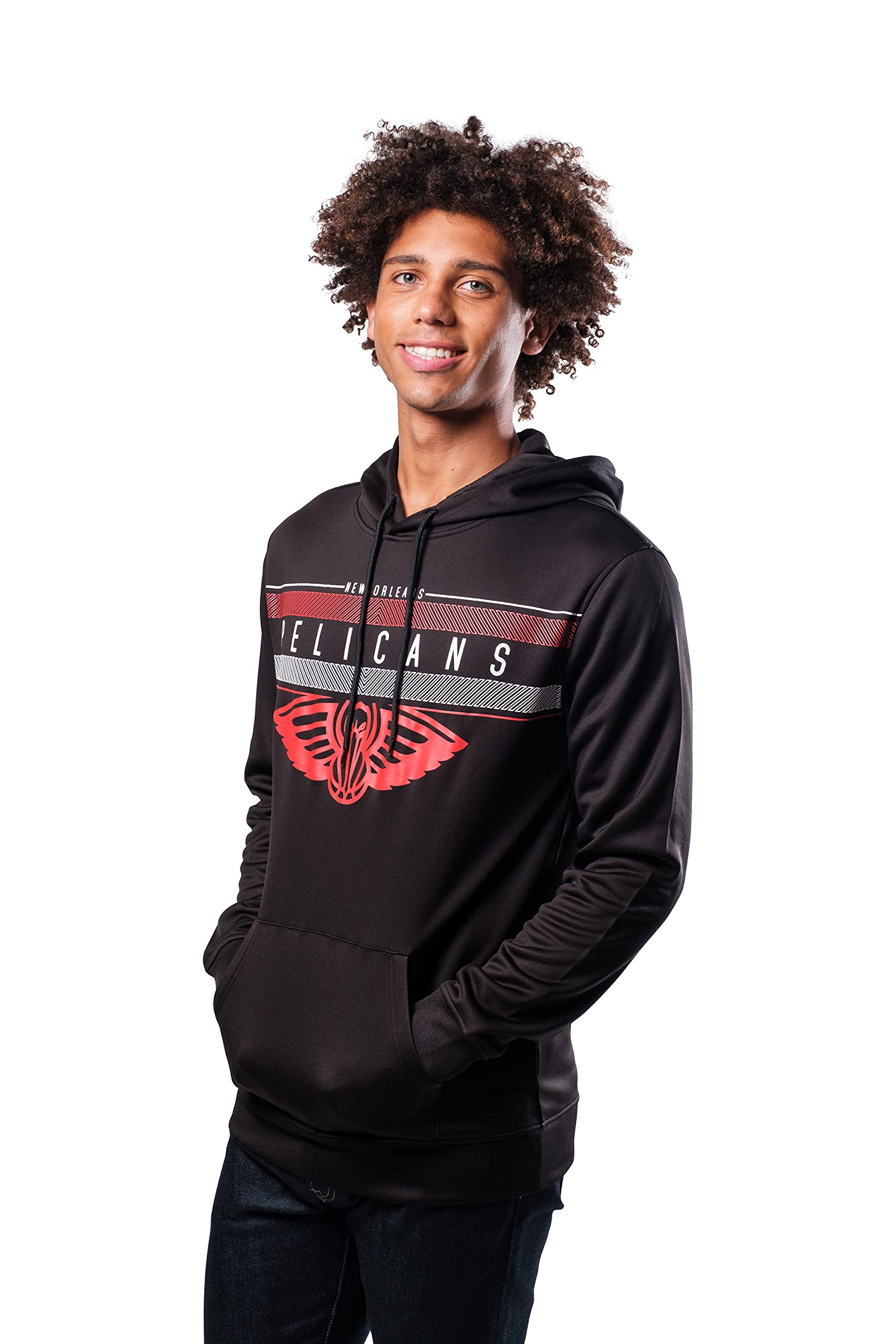 Description ULTRA GAME NBA APPAREL: Licensed by the NBA, Ultra Game NBA by UNK offers innovative designs with unique graphics and textures. SECURE FIT: Ribbed cuffs on sleeves and hem keep the hoodie in place, while a drawstring hood provides a custom fit. SOFT AND COMFORTABLE FABRIC: Breathable midweight poly-fabric and soft fleece lining ensure coziness. SPACIOUS FRONT POCKET: The roomy pouch offers storage and hand warming. SCREEN PRINTED GRAPHICS: Show off your team pride with official NBA team color graphics.