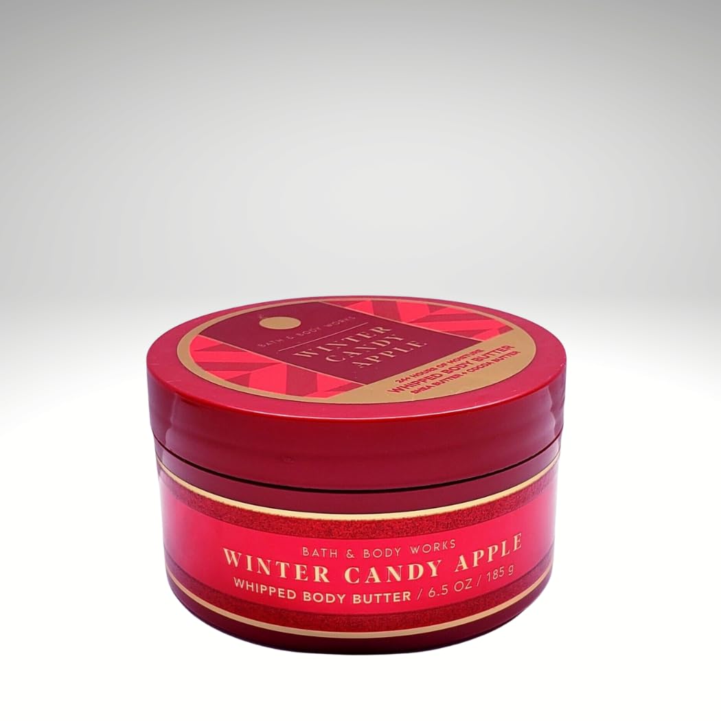 Bath & Body Winter Candy Apple Whipped Body Butter. What it smells like: the super-sweet fruit treat you know and love. Fragrance notes: red apples, winter rose petals, candied oranges, maple leaf, and fresh cinnamon. What it does: provides over 24 hours of intense moisture. Why you'll love it: Infused with the good stuff (shea butter, cocoa butter, and coconut oil). Whipped, fluffy texture absorbs quickly. Made without parabens or artificial dyes. Not tested on animals & Vegan. Dermatologist tested.