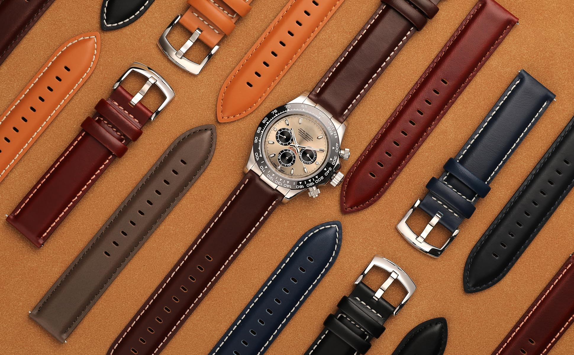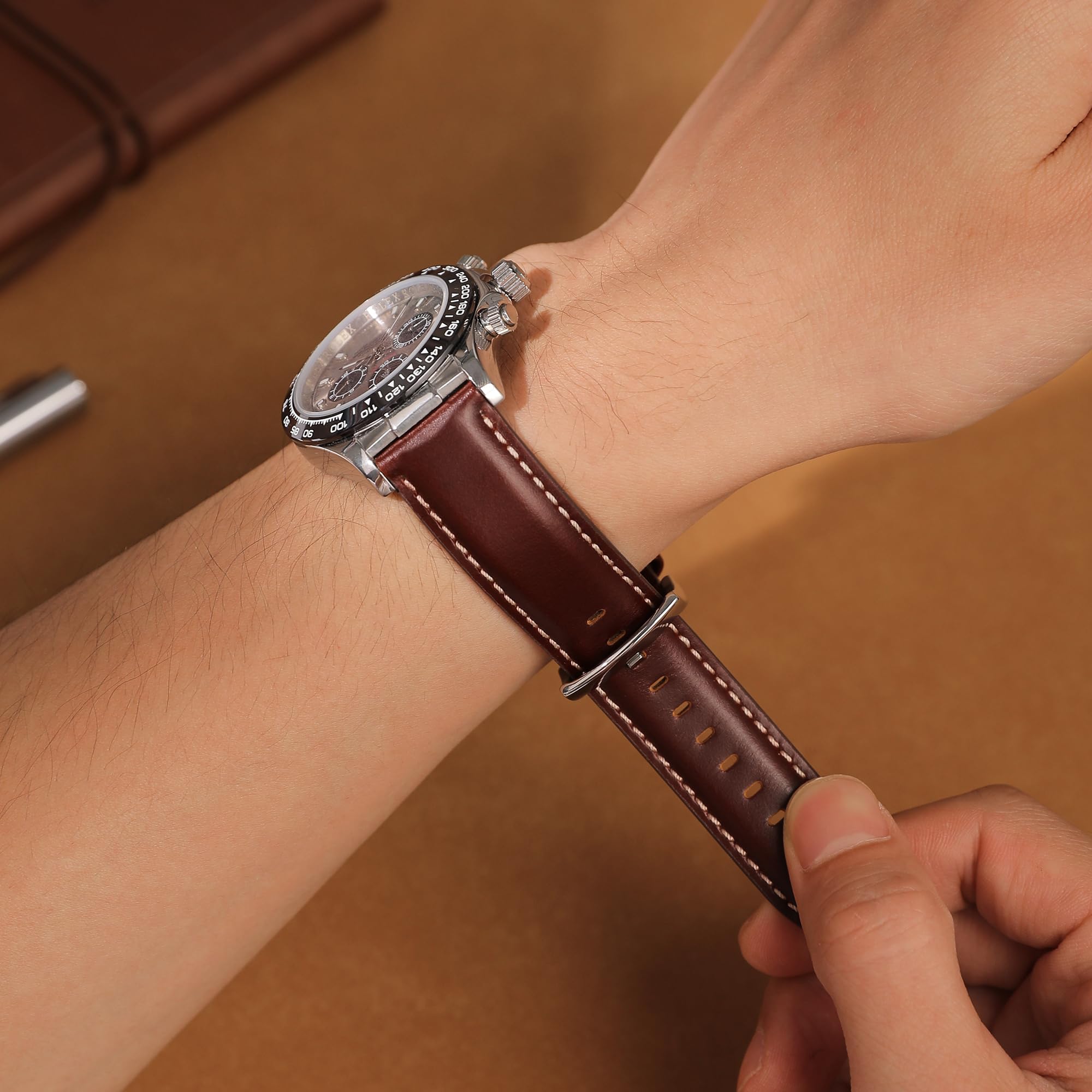 EXCELLENT WORKMANSHIP, All Handmade Work in High Standards: Looking good is in the details. Watch strap manufacturing is a time-consuming and labor-intensive process. We pay attention to every procedure of manufacturing to make sure every detail of the strap stands out and holds up, leather cutting, green material padding, band loops, glueing, open holes, wax edges, remarking, stitching, hardware assembling..., so our straps are definitely worthy of careful appreciation as handmade artwork.