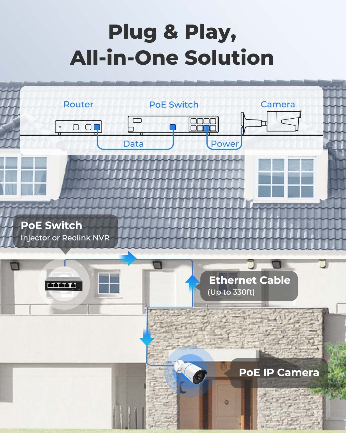 MUITIPLE RECORDING OPTIONS: These PoE surveillance cameras support recording 24/7 or motions detected to a 512GB microSD card(not included), FTP server, NAS and Reolink PoE NVRs, which wouldn’t require extra charges or subscription. Extra guarantee for security, zero-fee..