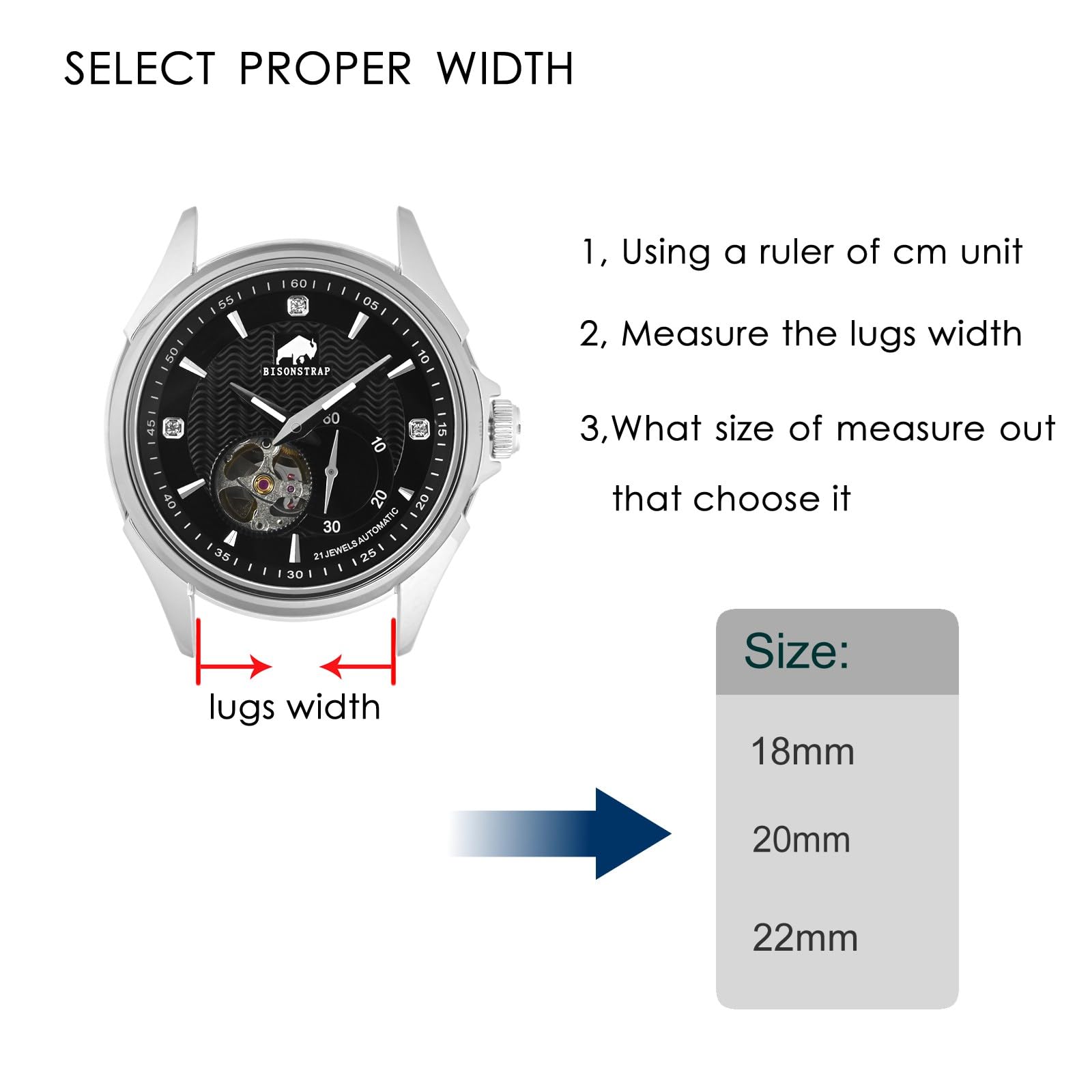 Size Selection: Compatible with traditional or smart watches with standard lug width of 16mm 17mm 18mm 20mm and 22mm. Please accurately measure your watch lug width before ordering. Size=Watch Lug Width