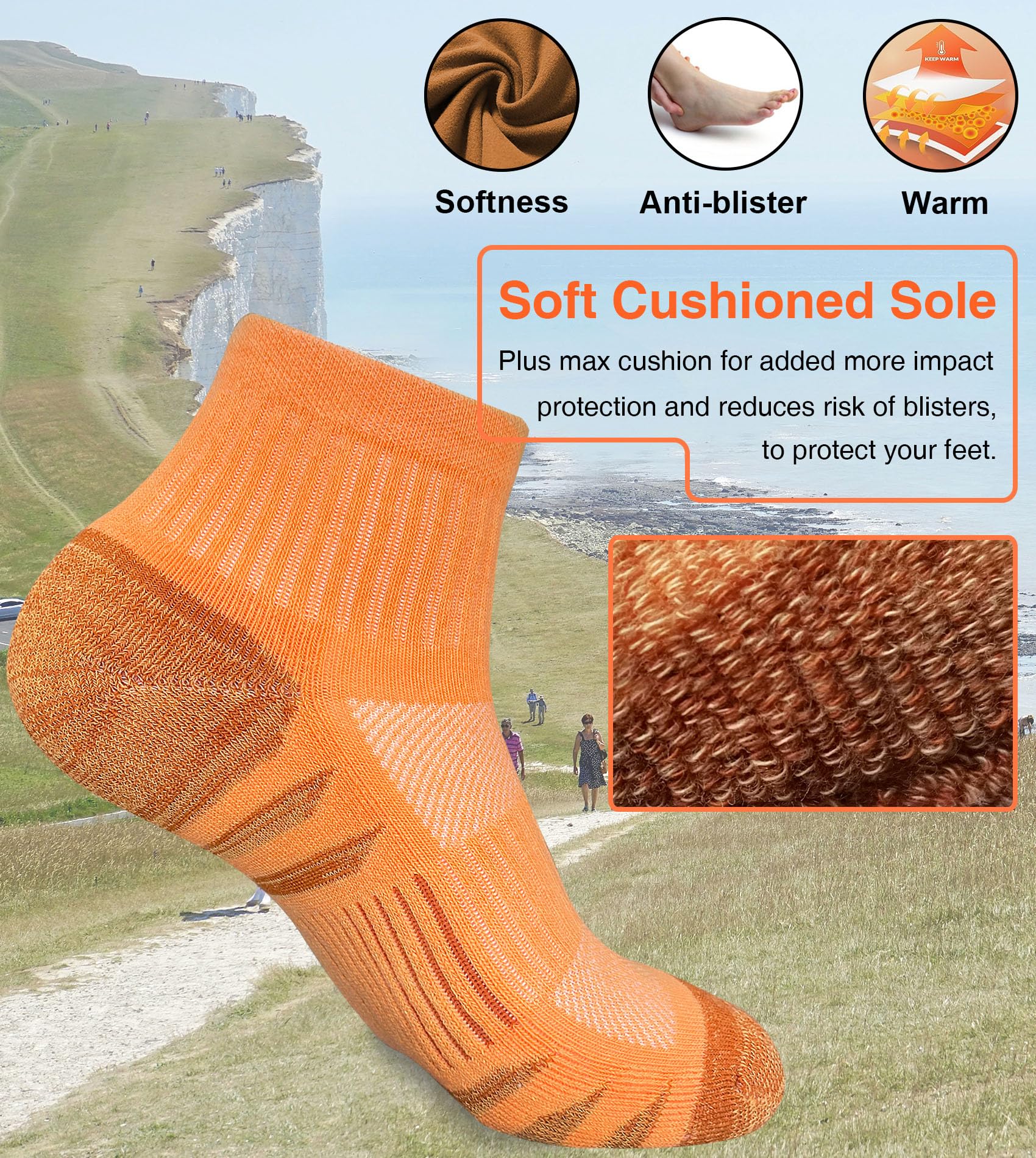 【Anti-blister Socks for Women】The Premium Fabric covers the Achilles tendon provides extra comfort and protection, effectively preventing blisters on the ankle from shoe contact. Lycra elastic cuff can lock the ankle and non-slip, ensure no blisters
