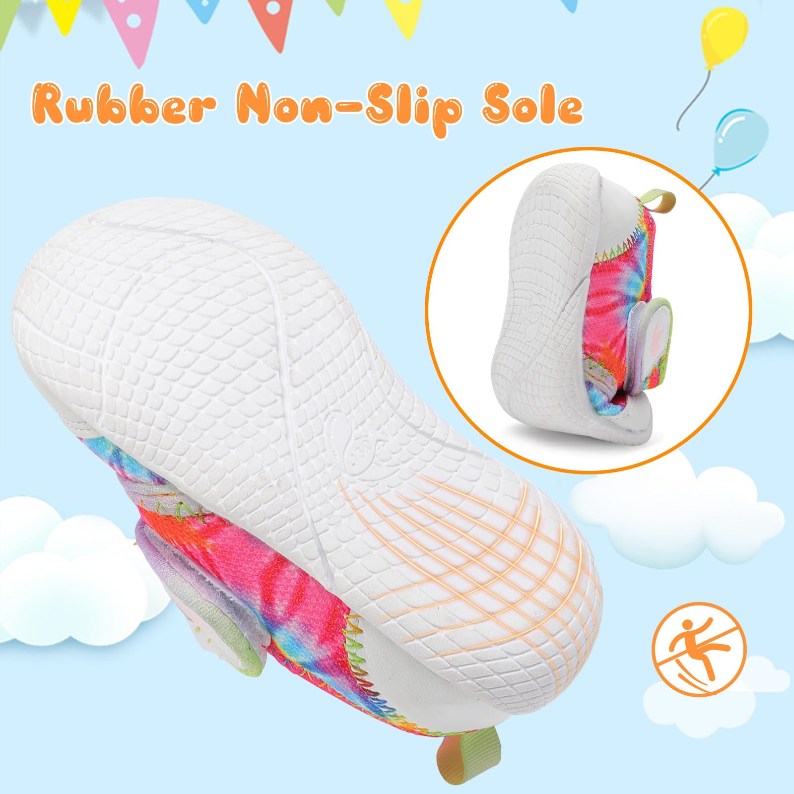 Sole: The rubber sole has more elastic and excellent anti-collision performance. Safe baby sports shoes, with soft rubber soles with anti slip points, can make your baby not slip easily when crawling or walking.