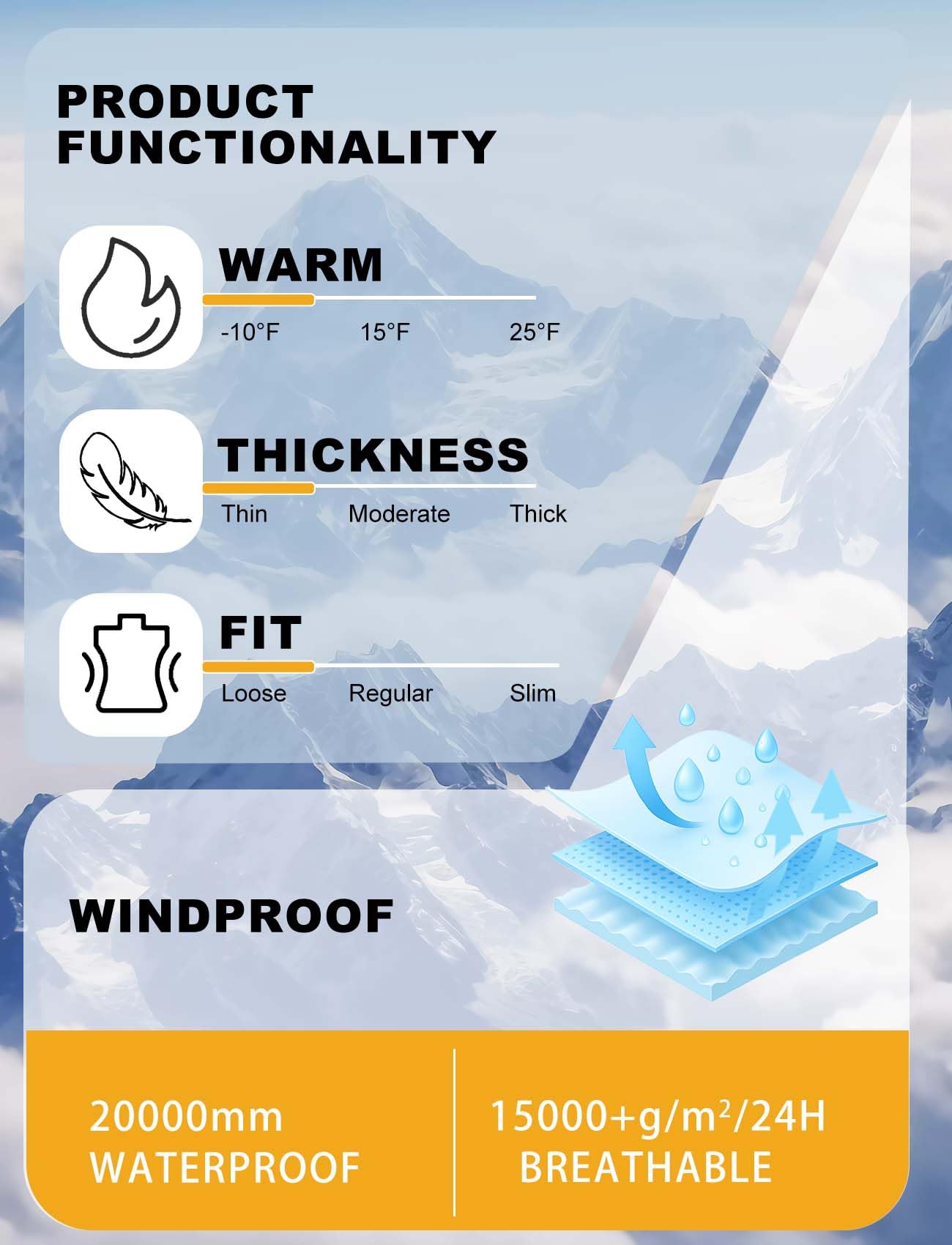 WATERPROOF AND BREATHABLE: The waterproof index is up to 20,000MM, which can withstand rain, snow and wind, breathable and lightweight, providing a warm and comfortable wearing experience for your skin;