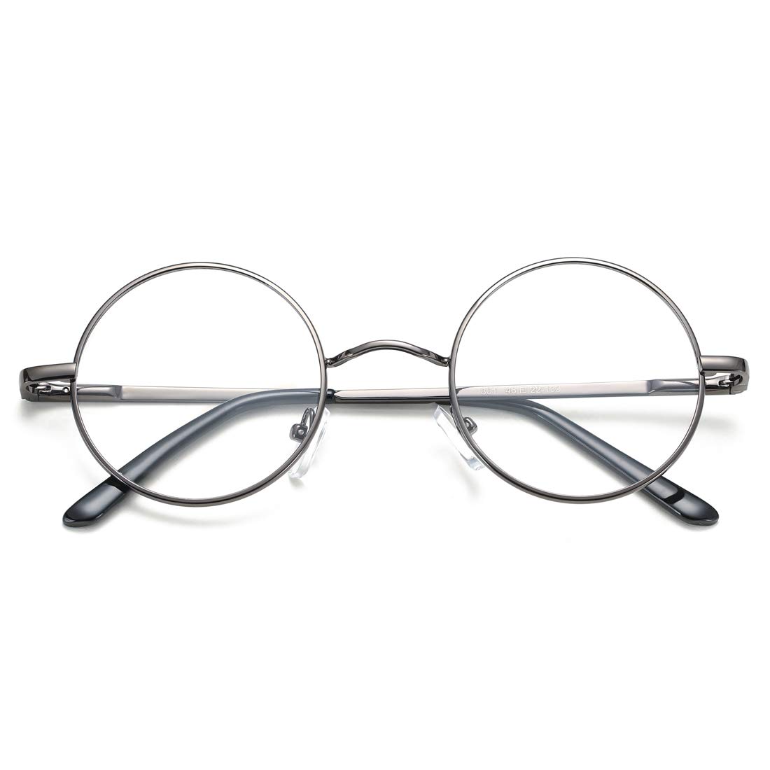 High quality round metal frame, non-prescription clear lenses, soft adjustable silicone nose pads