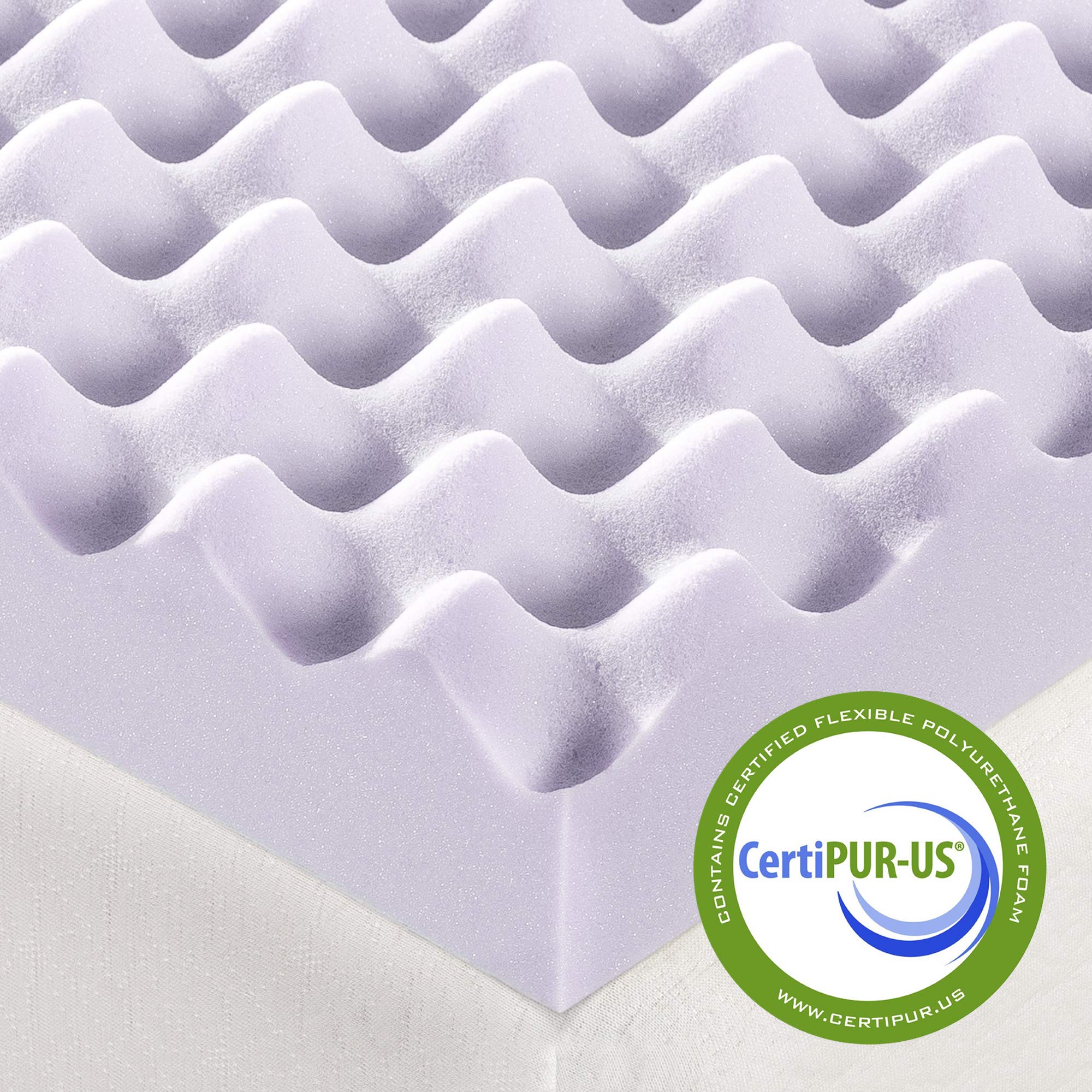 Best Price Mattress egg crate toppers are innovative premium memory foam mattress toppers that will ease you into a soothing night with a lavender infusion. It's the memory foam you love infused with soothing lavender to provide both comfort and ultimate support. Memory foam is well known for its body contouring features and pressure relief comfort throughout your whole body. Once you lay down, our memory foam toppers will start reacting to the temperature of your body and begin to mold itself to your shape, evenly distributing your weight. The egg crate memory foam structure is made for better airflow while providing a customized level of support. Combined with our pressure relief system, you will enjoy total relaxation with ultimate support in key areas including the head, shoulders and hips. Toppers come with a 3-year manufacturer's warranty.