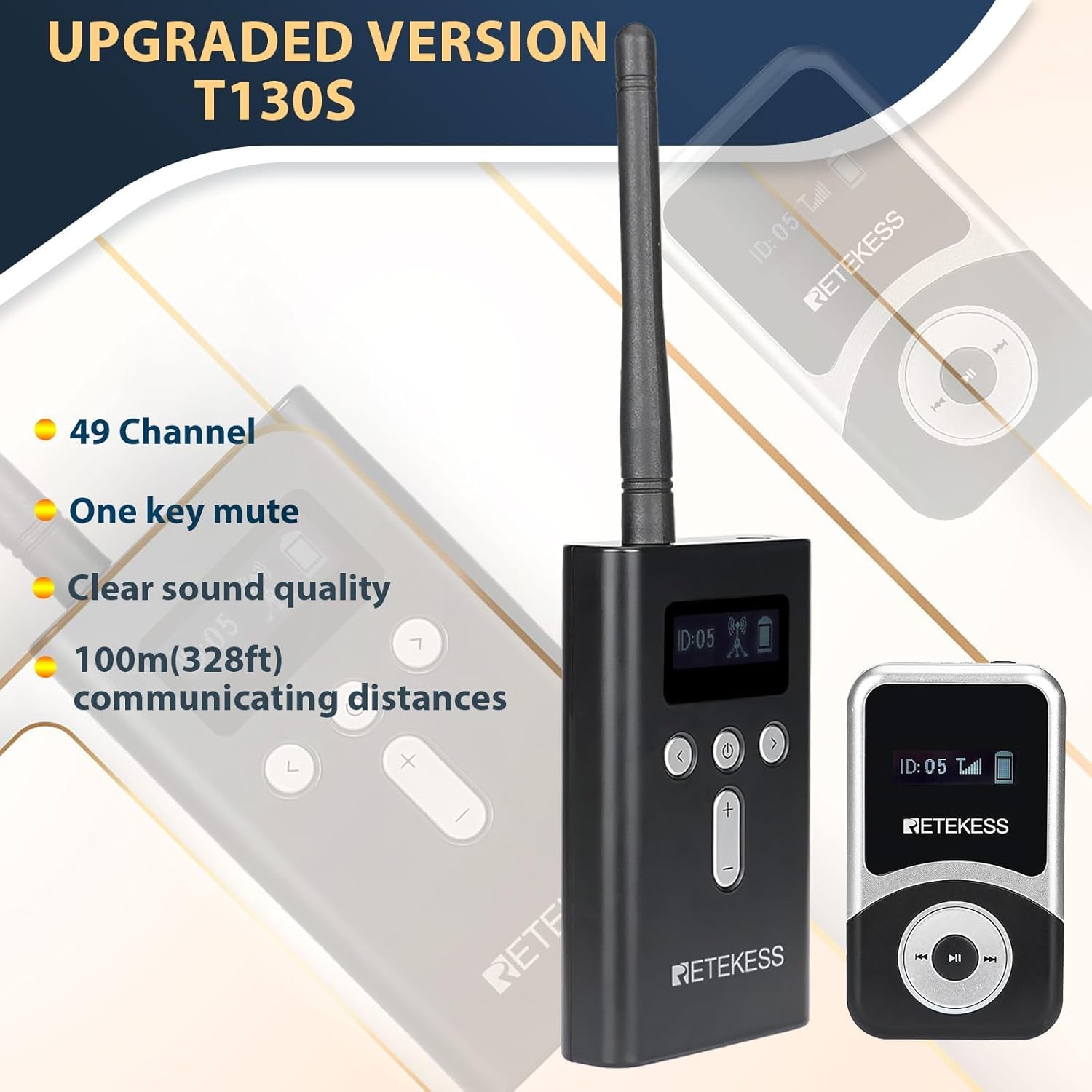Retekess T130S tour guide system is the upgrade model of T130; it is common with the old model; Reminder; The product cannot be translated automatically; an interpreter is required; our equipment will allow the interpreter's voice to reach those who need to hear it; while minimizing the disturbance to those who don't need it