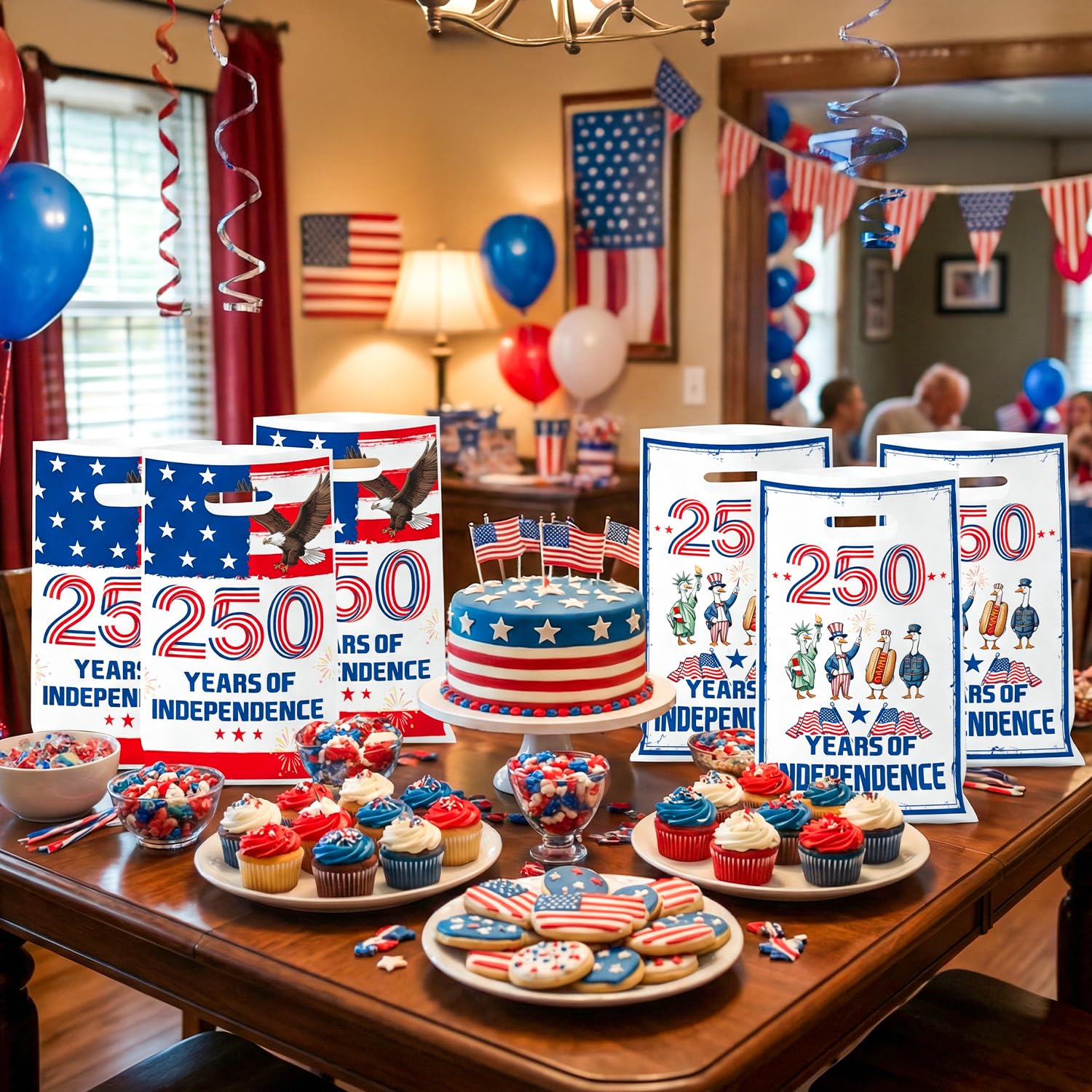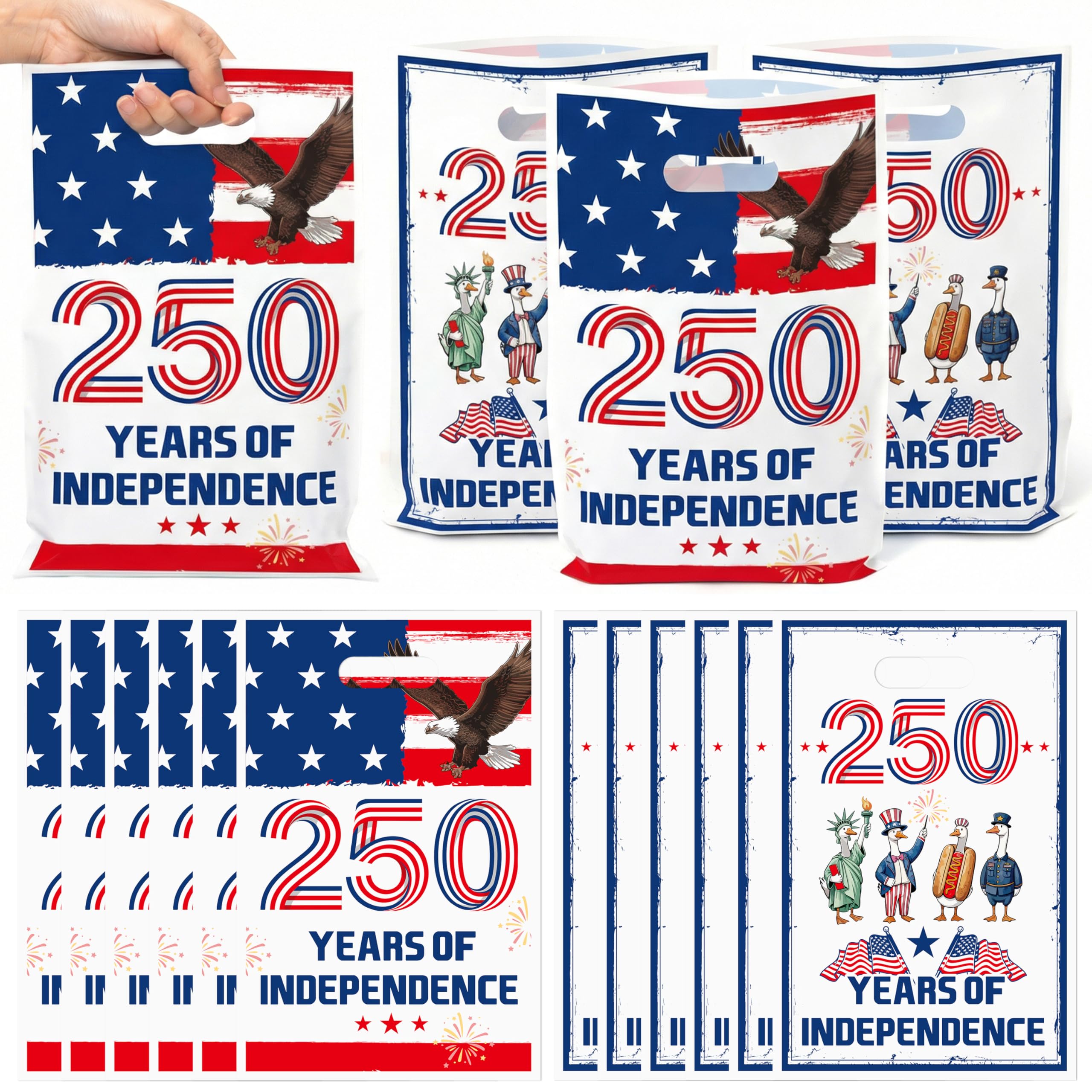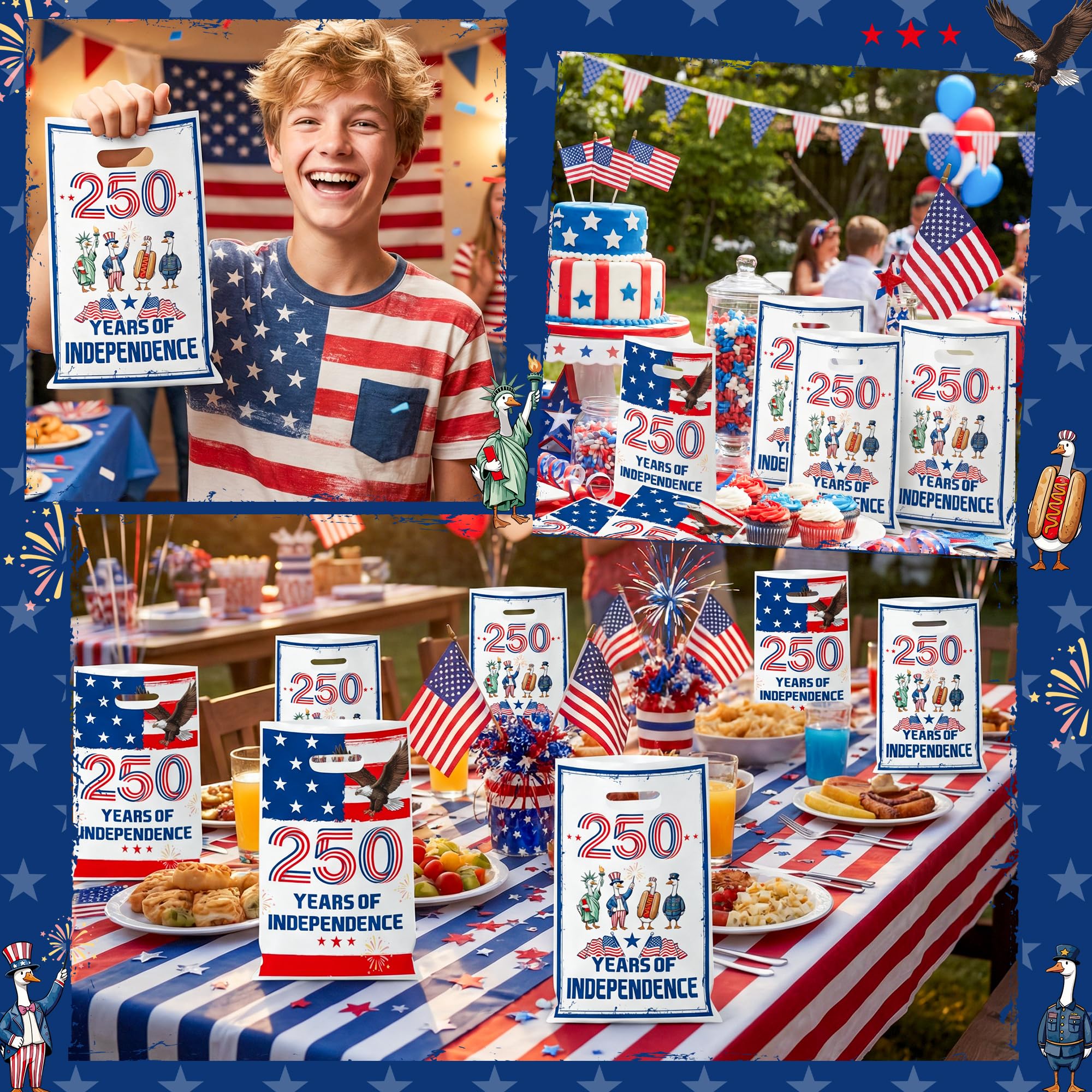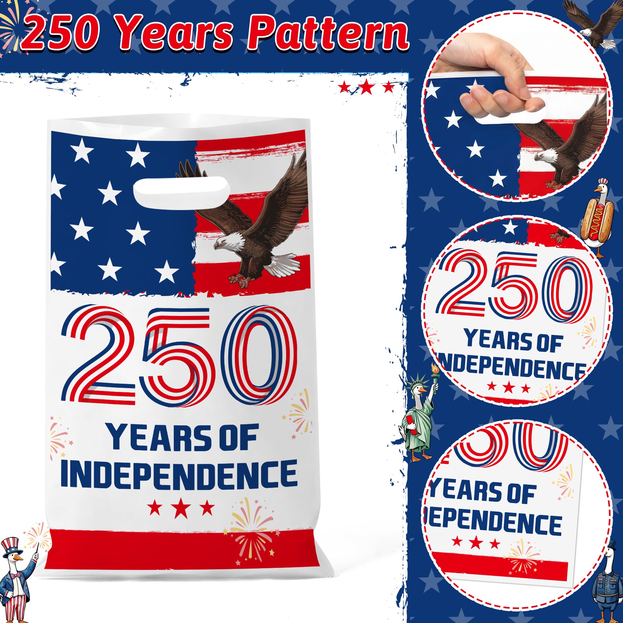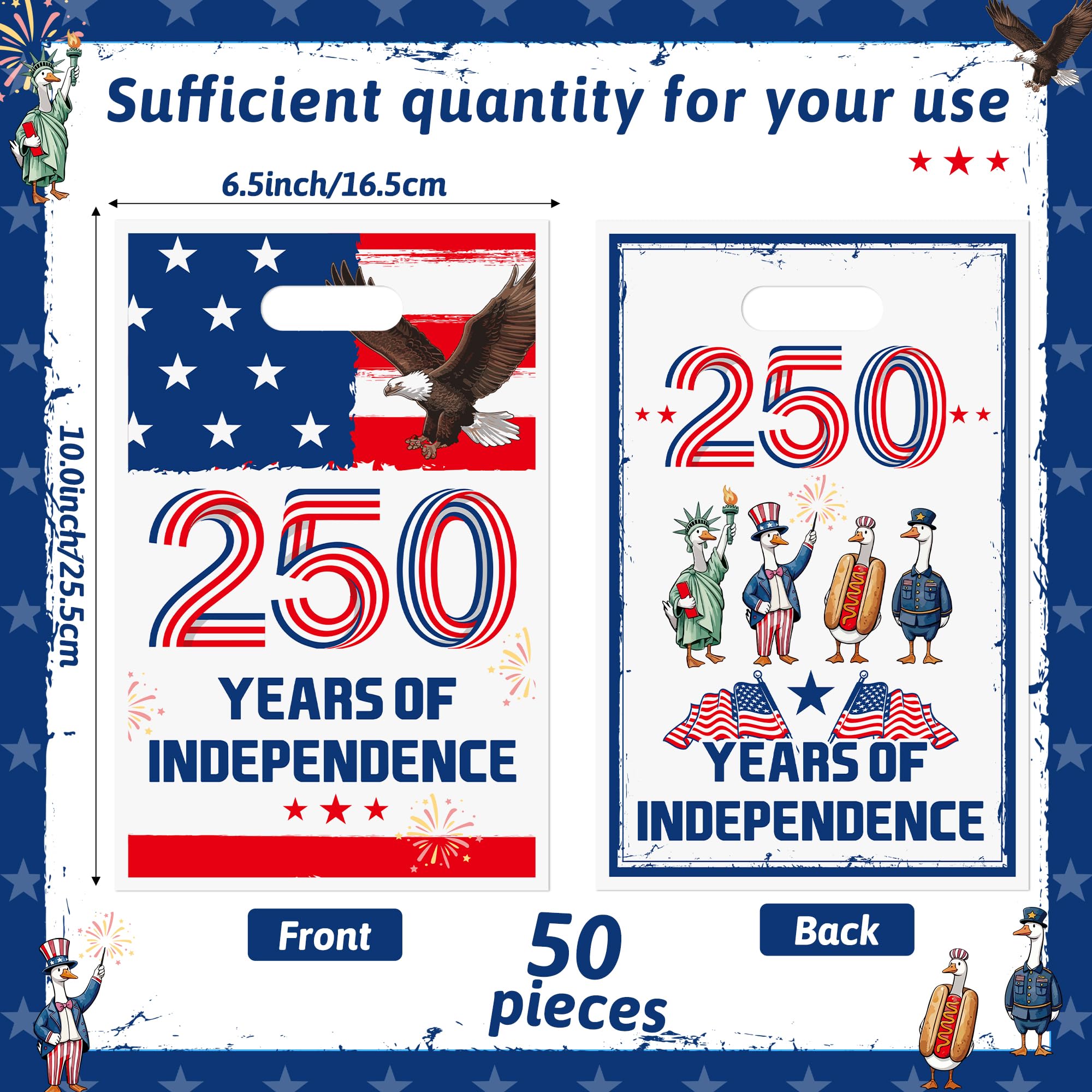 PACKAGE INCLUDES: You will receive 50pcs bags with double-sided printed 250 years pattern, enough quantity to meet parades and gatherings gift-giving