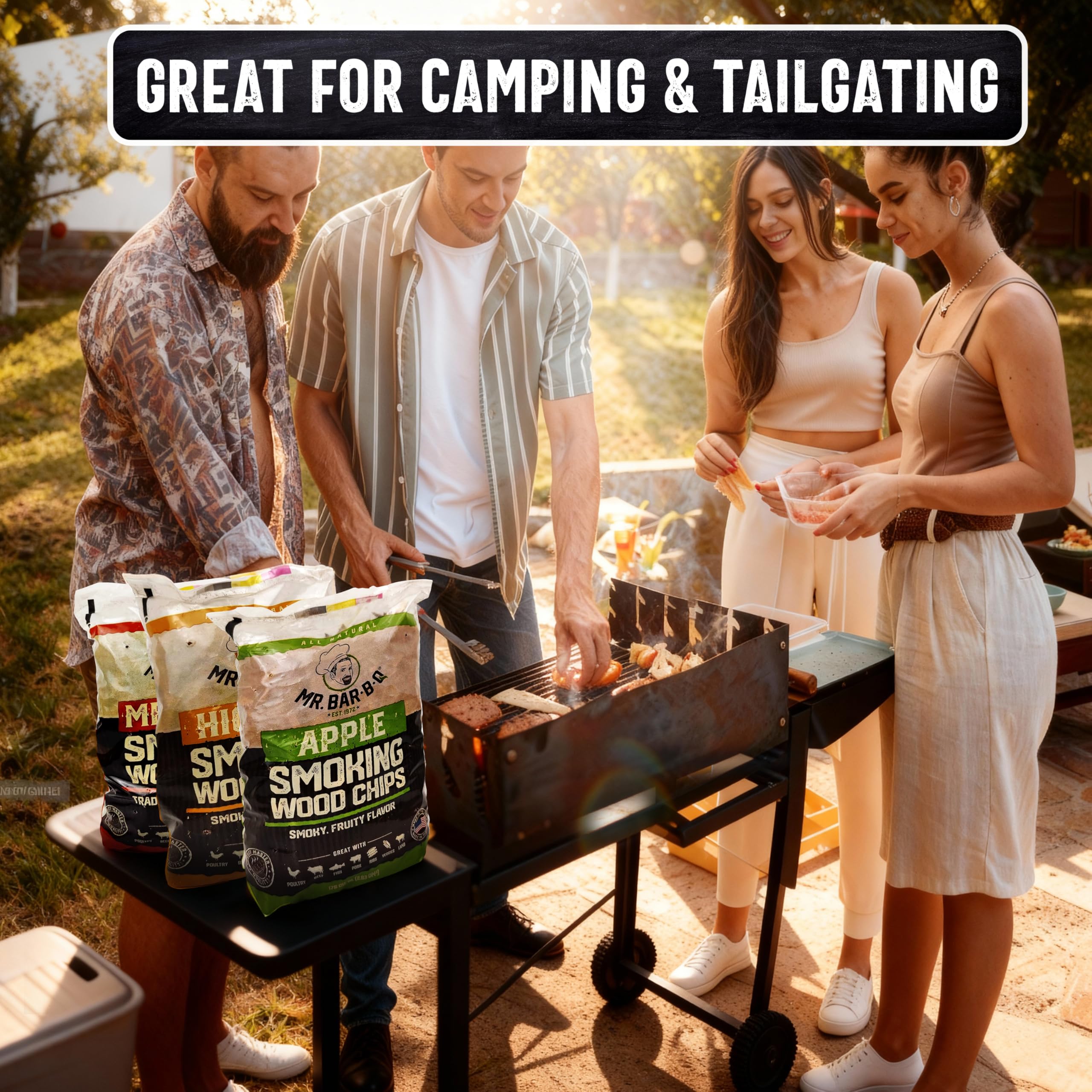 3-PACK VARIETY OF PREMIUM SMOKING WOOD CHIPS – Elevate every barbecue with this ultimate smoking wood chip bundle, featuring three 1.8 lb bags of premium, all-natural wood chips. Includes Hickory for bold, classic BBQ flavor, Applewood for a subtly sweet and fruity aroma, and Mesquite for deep, earthy smokiness—perfect for ribs, brisket, poultry, pork, seafood, lamb, and game meats. Ideal for use in charcoal grills, gas grills, electric grills, and smokers, this variety pack delivers rich, versatile flavor options for backyard BBQs, camping trips, and tailgates.