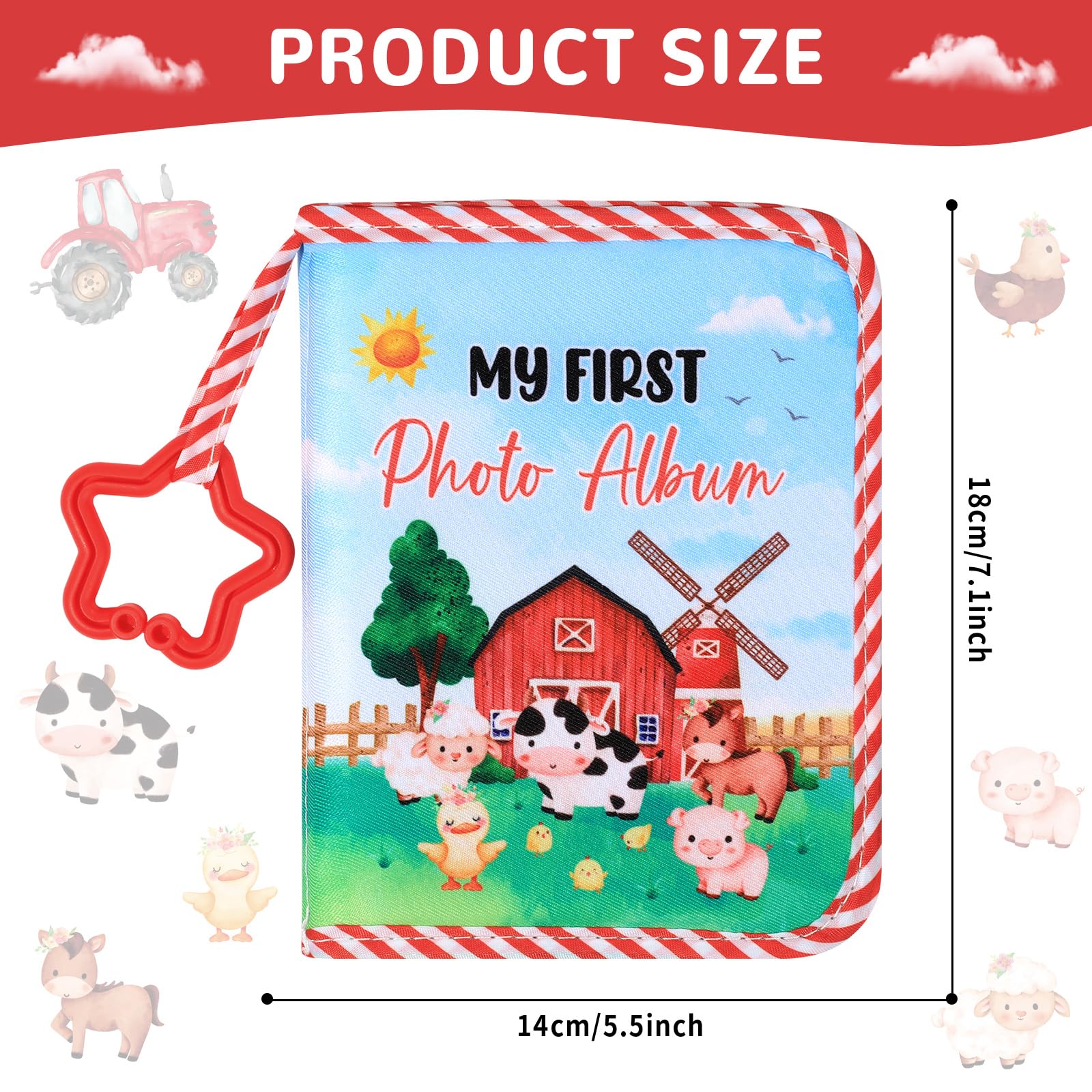 Suitable size & durable material: Crafted with care, this farm animals baby album and memory book measures approximately 7.1x5.5 inches (18 x 14cm) and is made from high-quality, soft-touch material that is gentle on your baby's skin. This farm animals baby photo album book is built to last, ensuring that your precious memories remain intact for years to come.