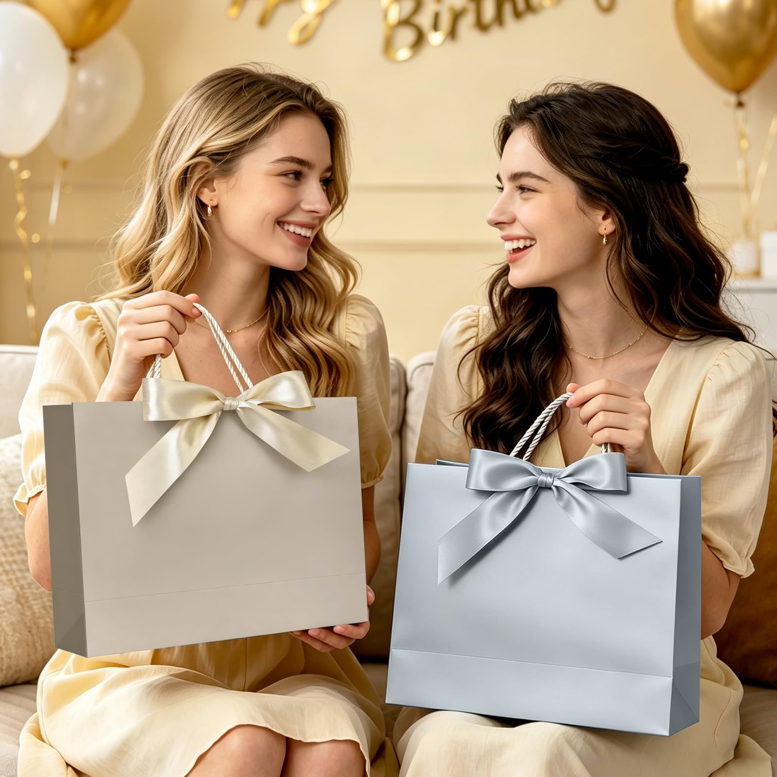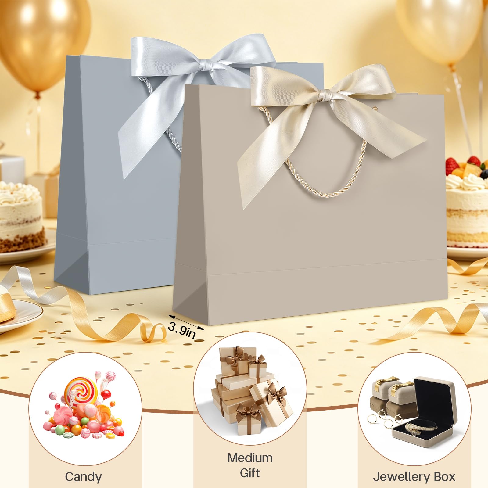 BOW RIBBON DESIGN- The ribbon bows with gift bags will not only add an elegant high-end atmosphere ,but also enrich your gift, making your gift more luxury and special. With the chic look and brilliant quality,the gift bag will be appreciated by the recipient not only what's inside but the overall presentation.It will create sweet memories for your and receiver.