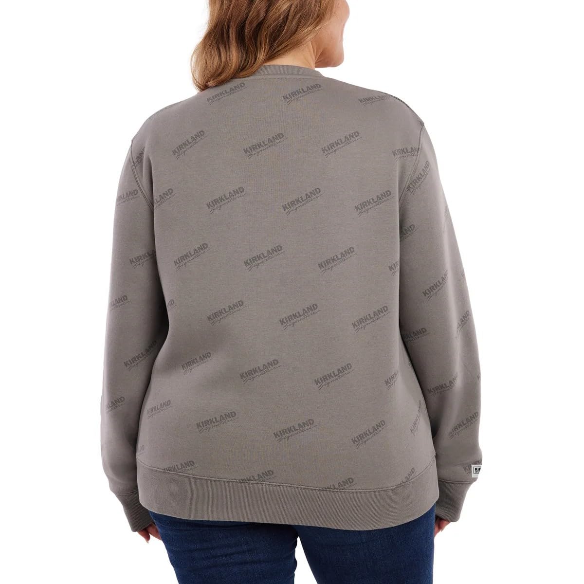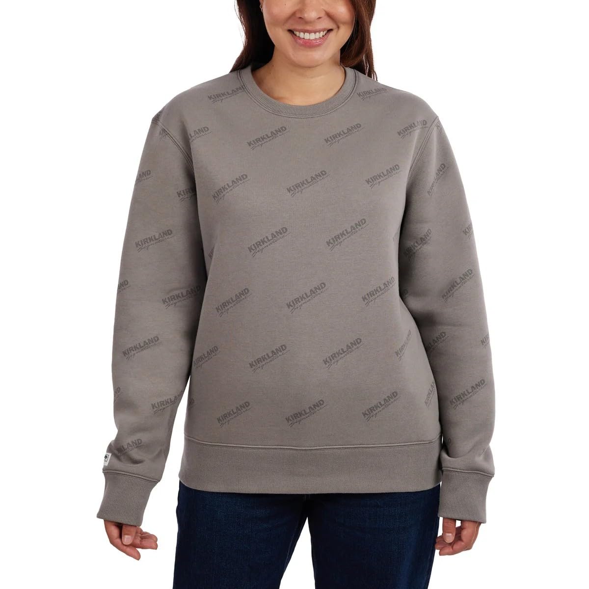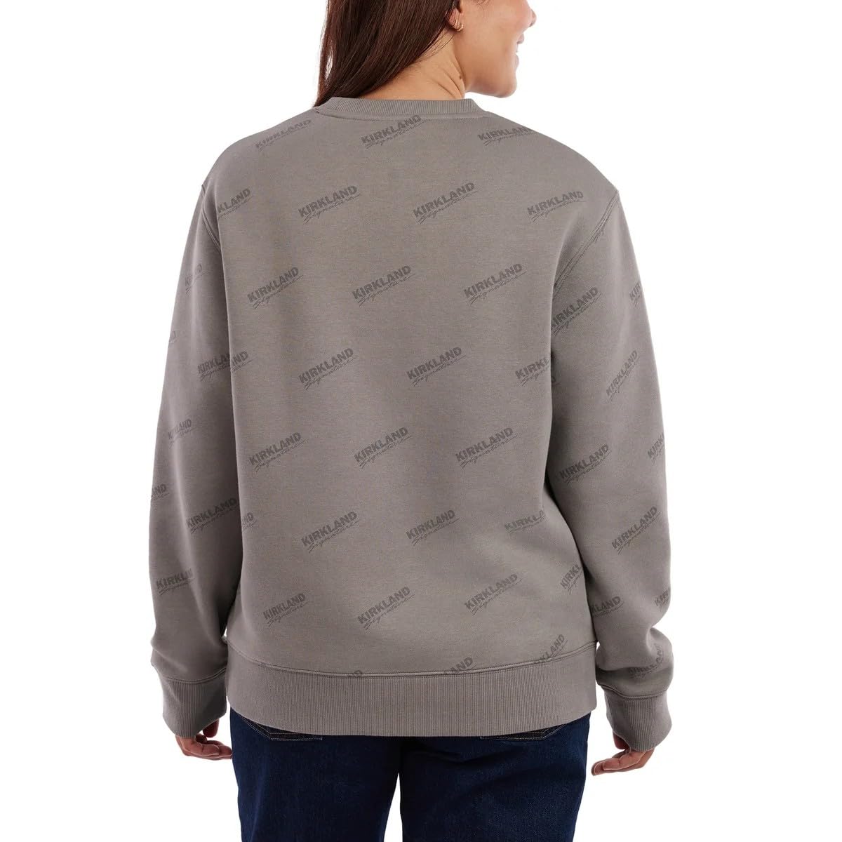 CLASSIC DESIGN: Relaxed fit crewneck sweatshirt featuring ribbed hem and cuffs, with tonal all-over Kirkland Signature logo print in gray
