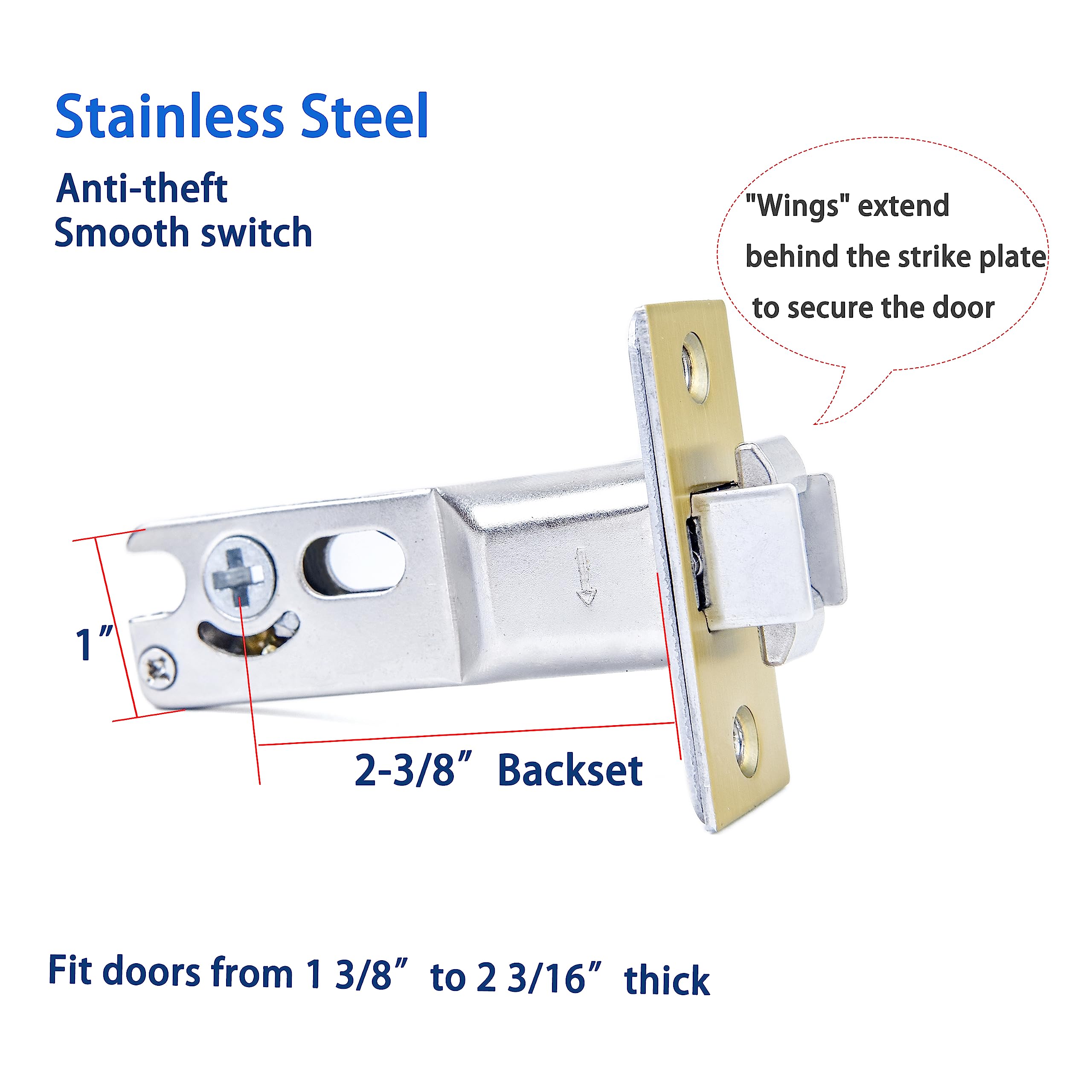High Quality Material: Alloy steel with electroplated surface brushed nickel, and matte Black, corrosion resistant. Specification: 2-1/16” diameter hole, 1” diameter latch hole and 2-3/8” backseat.