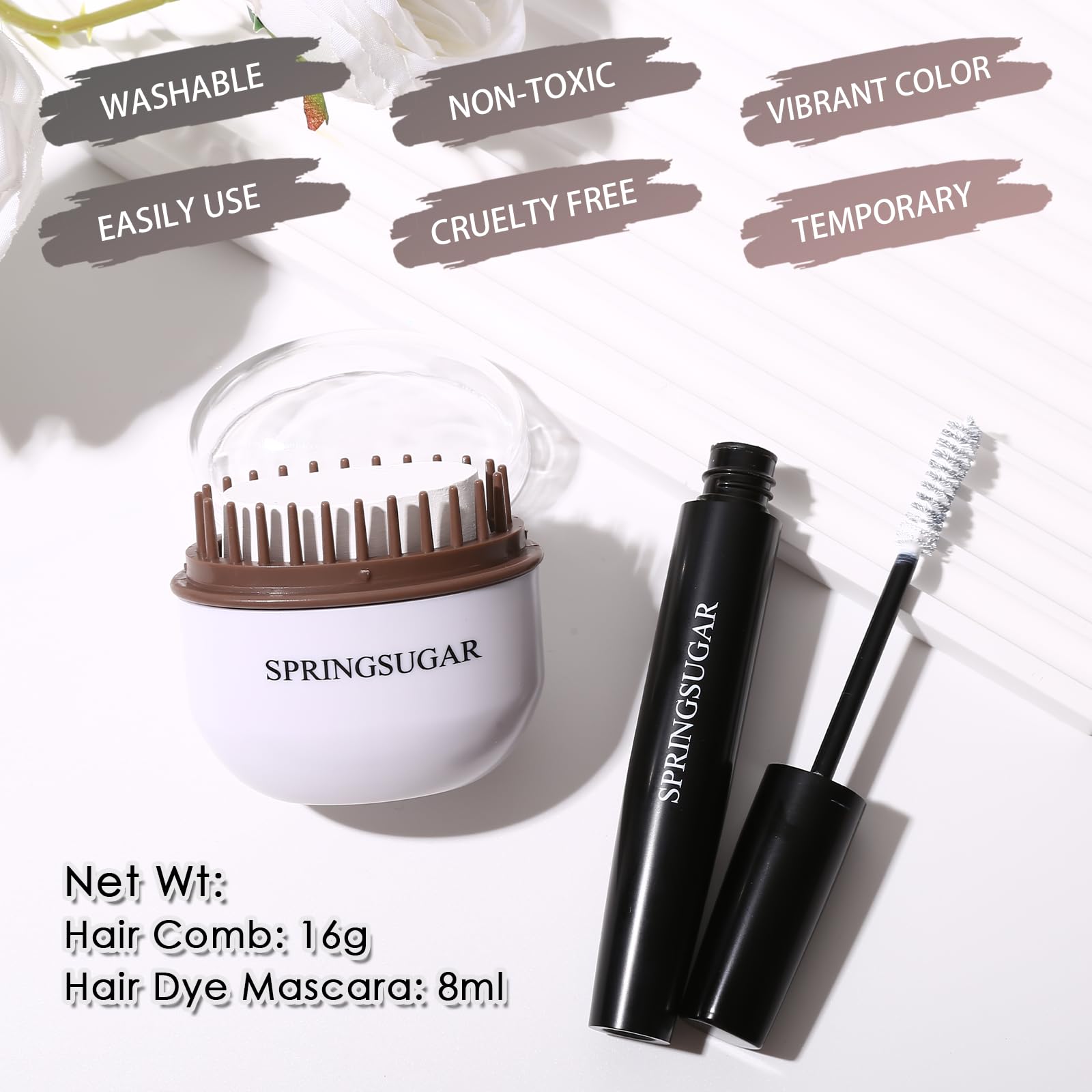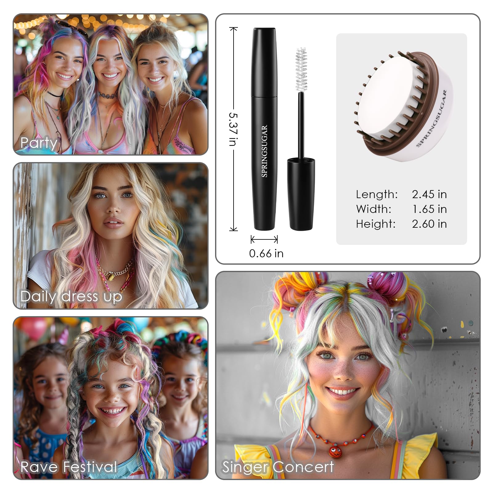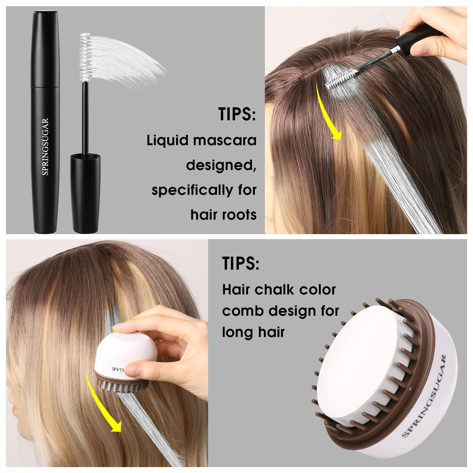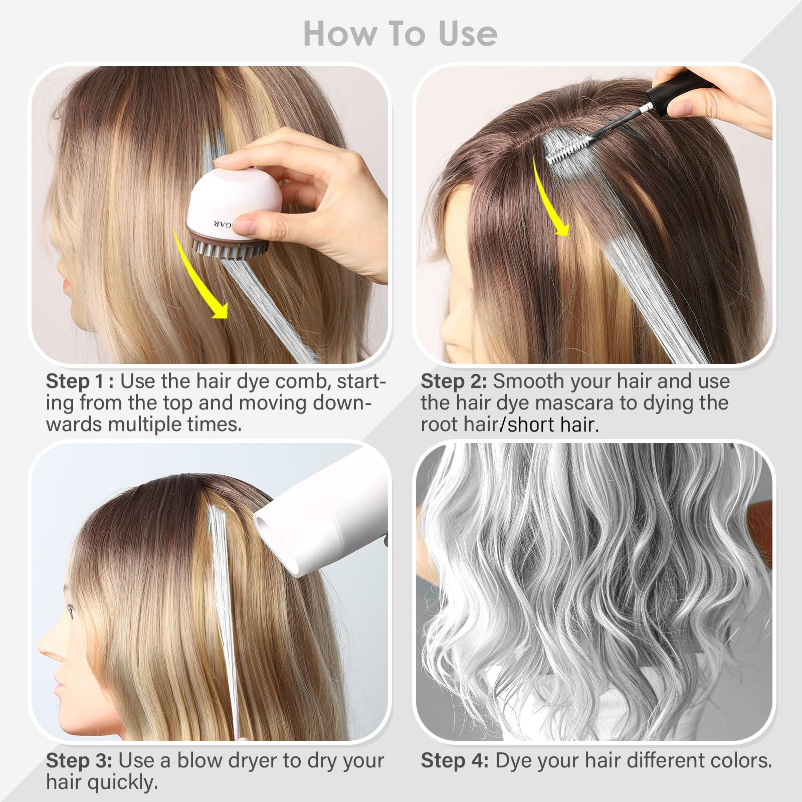 Temporary Hair Color Comb + Hair Mascara Design: Special design for all hair, the hair mascara for hair root, the hair comb for long hair, visible and vibrant on all color hair - including dark hair.