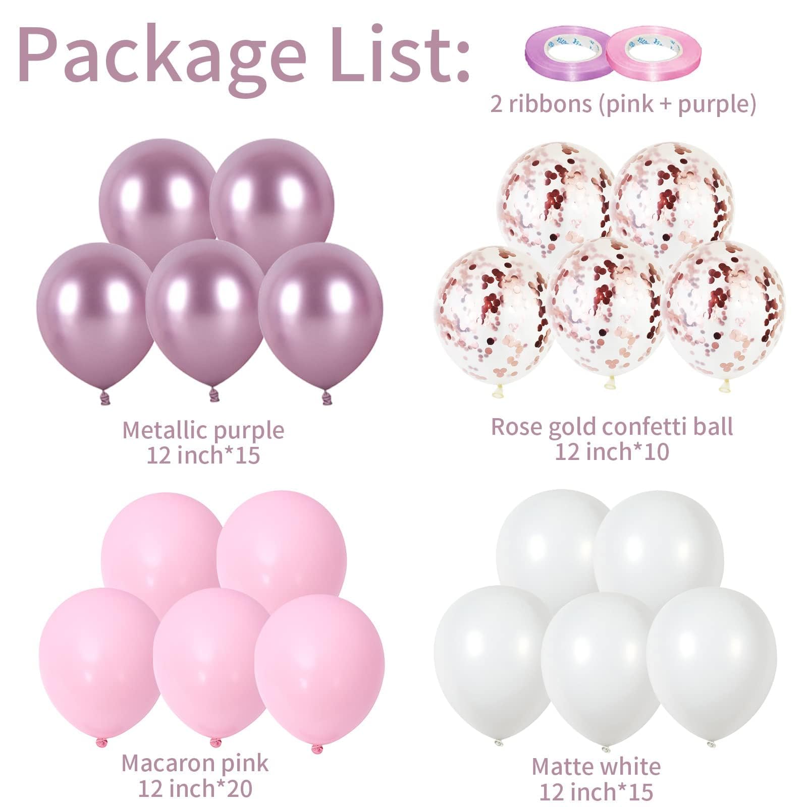 Excellent Party Supplies: 60 balloons and 2 ribbons. All our party balloons are shipped in vacuum packaging to prevent them from being oxidized during transportation.