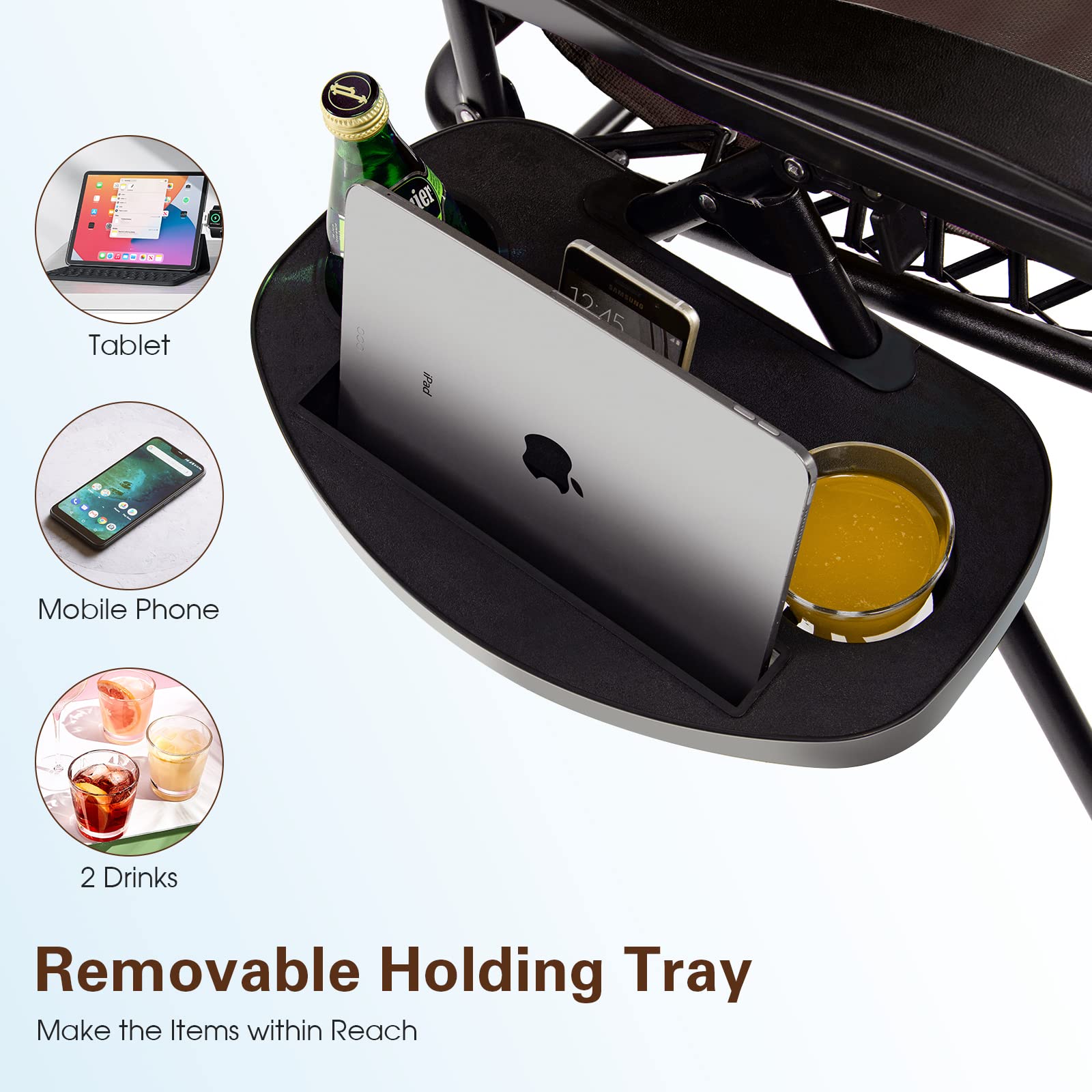 【Cup Holder Tray and Headrest】Equipped with a detachable cup holder tray, you can enjoy the beverage, magazines and phone within a hand reach. Additionally, the comfortable armrests and position-adjustable pillow promote seating experience for people with different heights.
