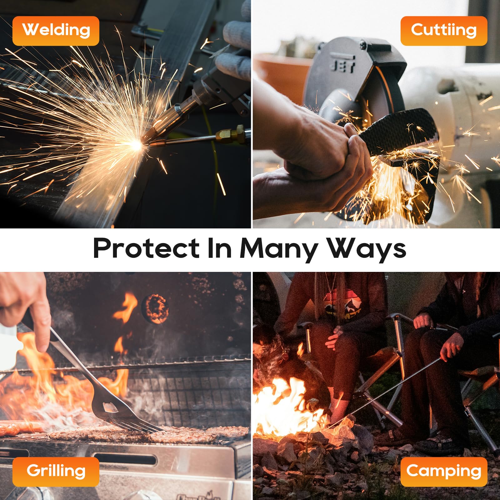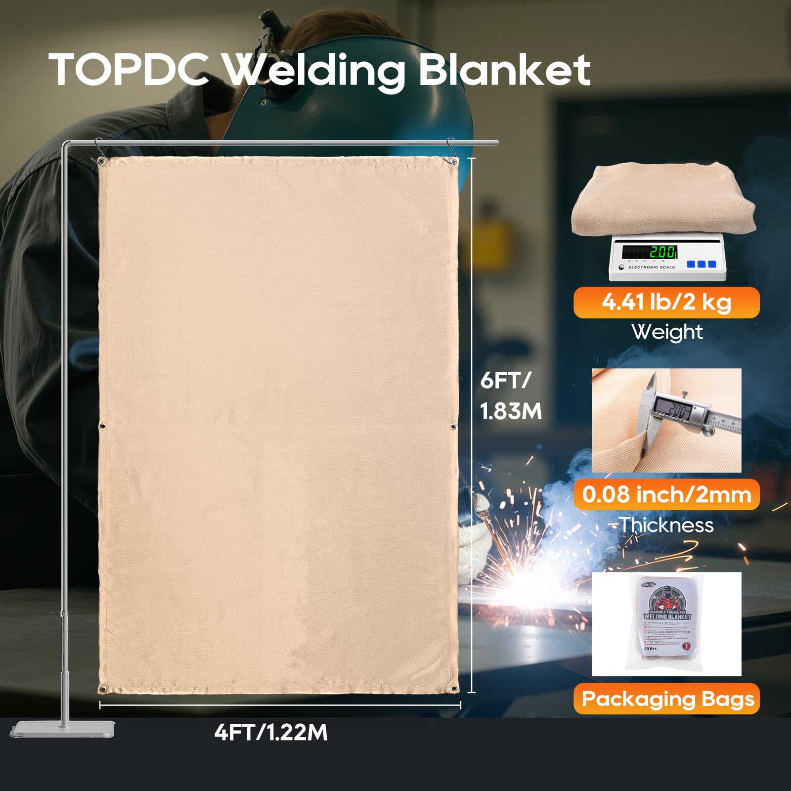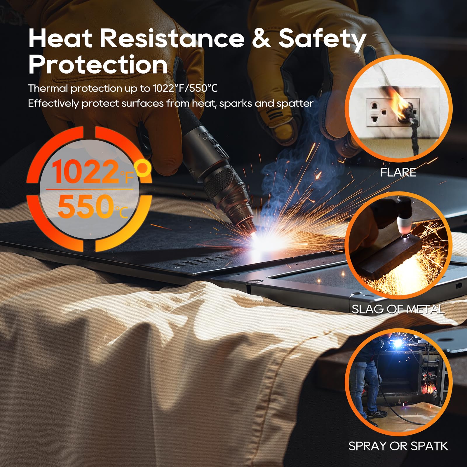 Superior Heat Resistance & Spark Protection: Crafted from high-quality 24.7 oz/yd² fiberglass fabric, TOPDC welding blanket offers exceptional thermal insulation and high-temperature resistance, enduring temperatures up to 1,022℉ (550℃). It effectively shields welders, property, and equipment from intense heat, embers, sparks, and splatters, ensuring a safe welding environment