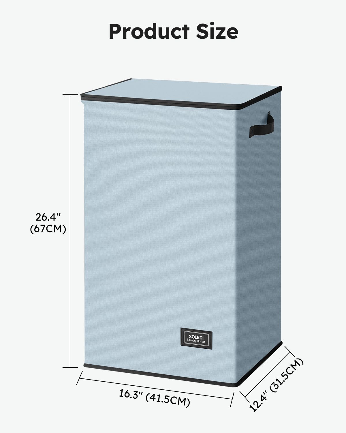 【90L Super Capacity】SOLEDI clothes hamper standing size 16.3"L×12.4"W×26.4"H, 90L large capacity clothes bin to meet the week's change of clothes storage, reduce the number of weekly trips to the laundry room. 90L tall laundry basket is large enough to hold all the family member's clothes or towels. Good choice for family life or touring car.