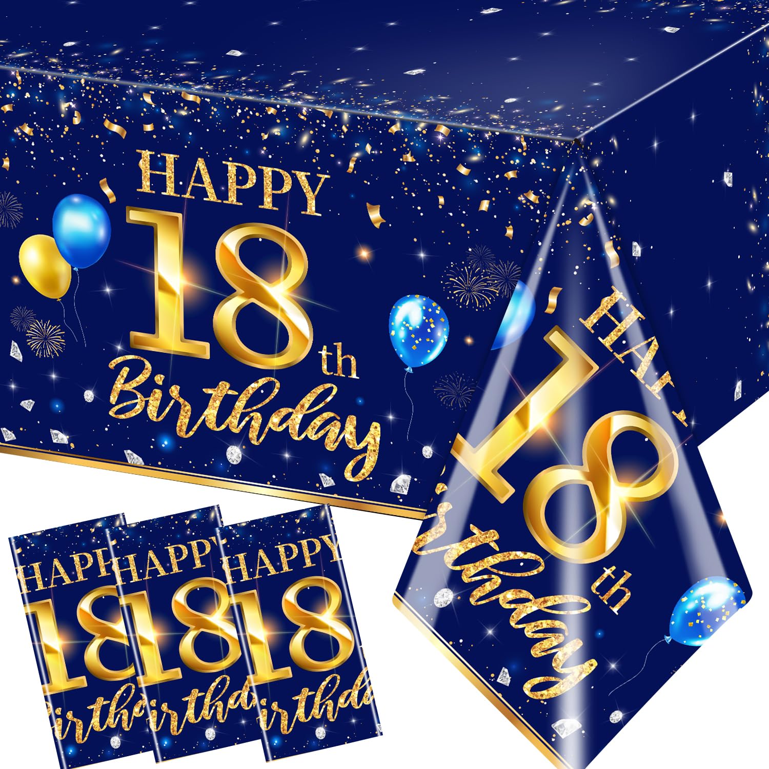 [Unique design] - Unique Blue Gold color, with exquisite party elements, such as balloons, flags, fireworks, etc. The extra-large golden number "18" is very eye-catching, which sets off the sweet party atmosphere for the 18th birthday, enough to create an 18-year-old Happy birthday theme party.