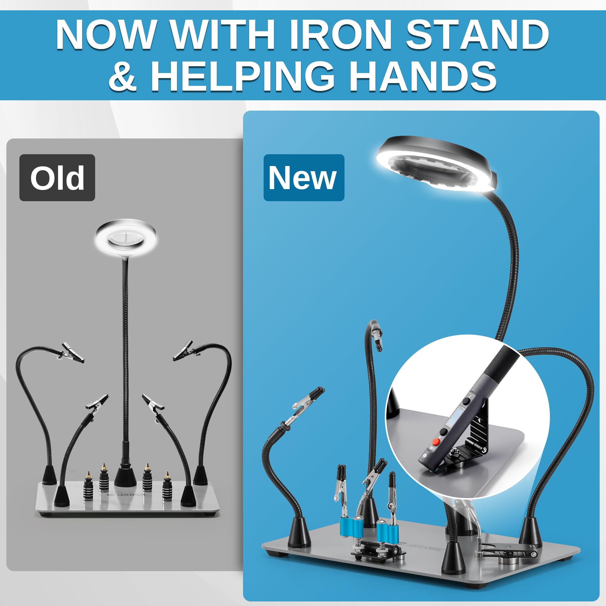 Dedicated Heat-Resistant Iron Holder: This new addition safely secures your soldering iron between tasks with its sturdy metal build, preventing burns and workspace damage—an essential upgrade previous versions lacked