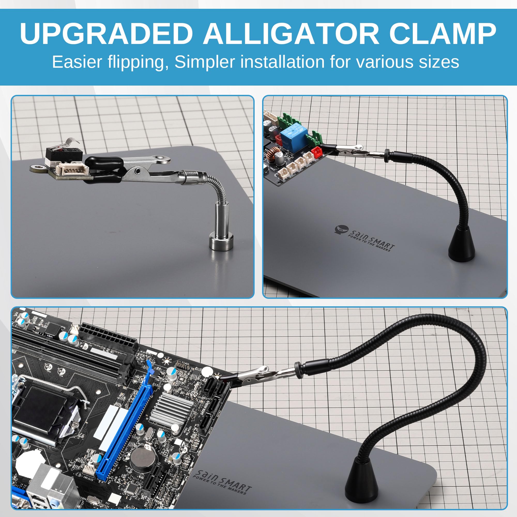 Revolutionary Alligator Clip System: Say goodbye to the old column-based clamps! Our new alligator-style arms come in 3 sizes across 6 arms for effortless installation, flipping, and removal—no more struggling with tricky components