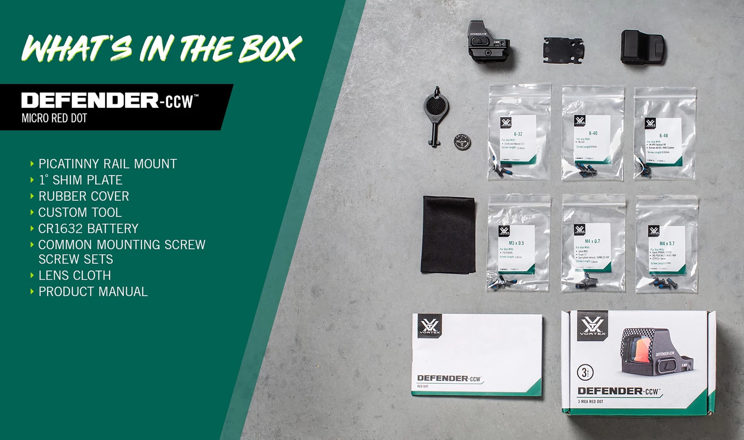 Built compact and tough for everyday carry, the Defender-CCW still offers a class leading window size, along with exceptional optics with minimal distortion for a truer sight picture. Adjustable brightness lets you find the perfect setting for your eye, while a button lockout feature prevents accidental adjustments while carrying. And with a long battery life and motion activation, you can be confident the Defender-CCW will be ready when you need it.