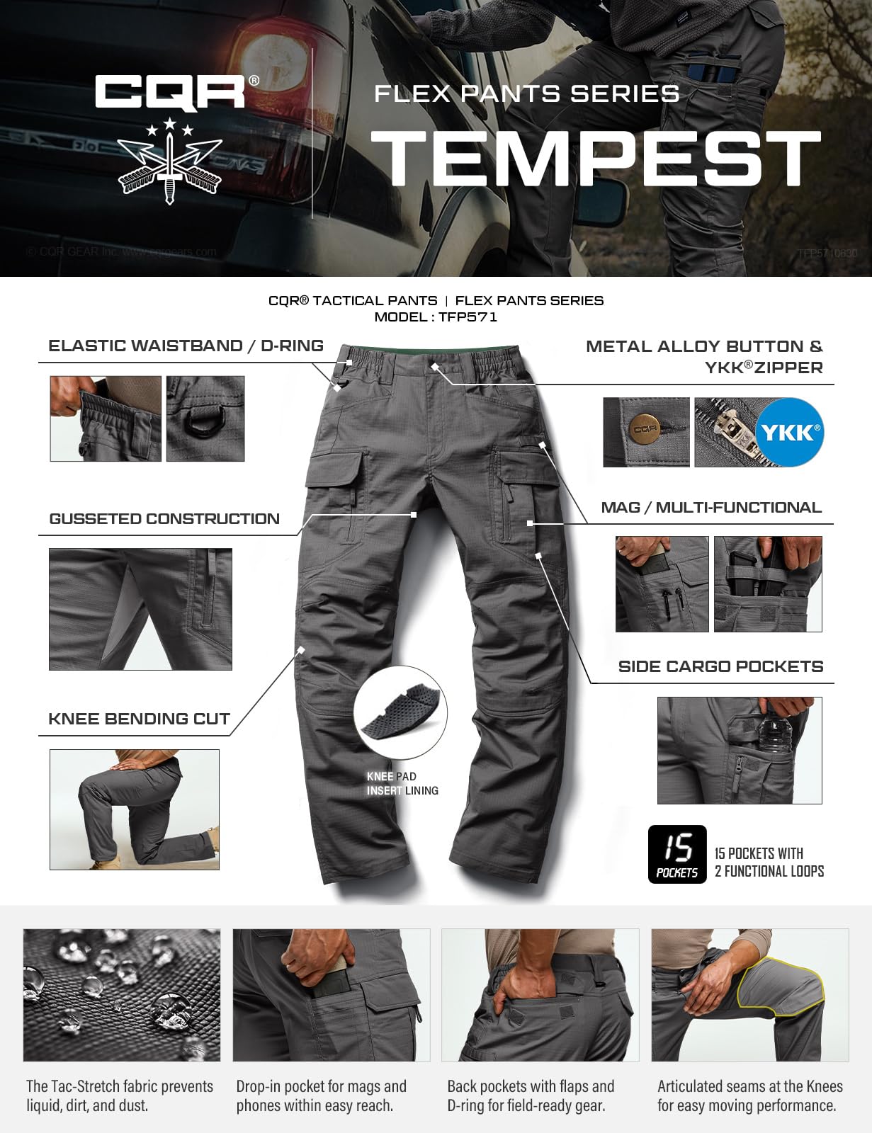 [Tac-Stretch Fabric] Improved range of movement and apt for tough conditions.