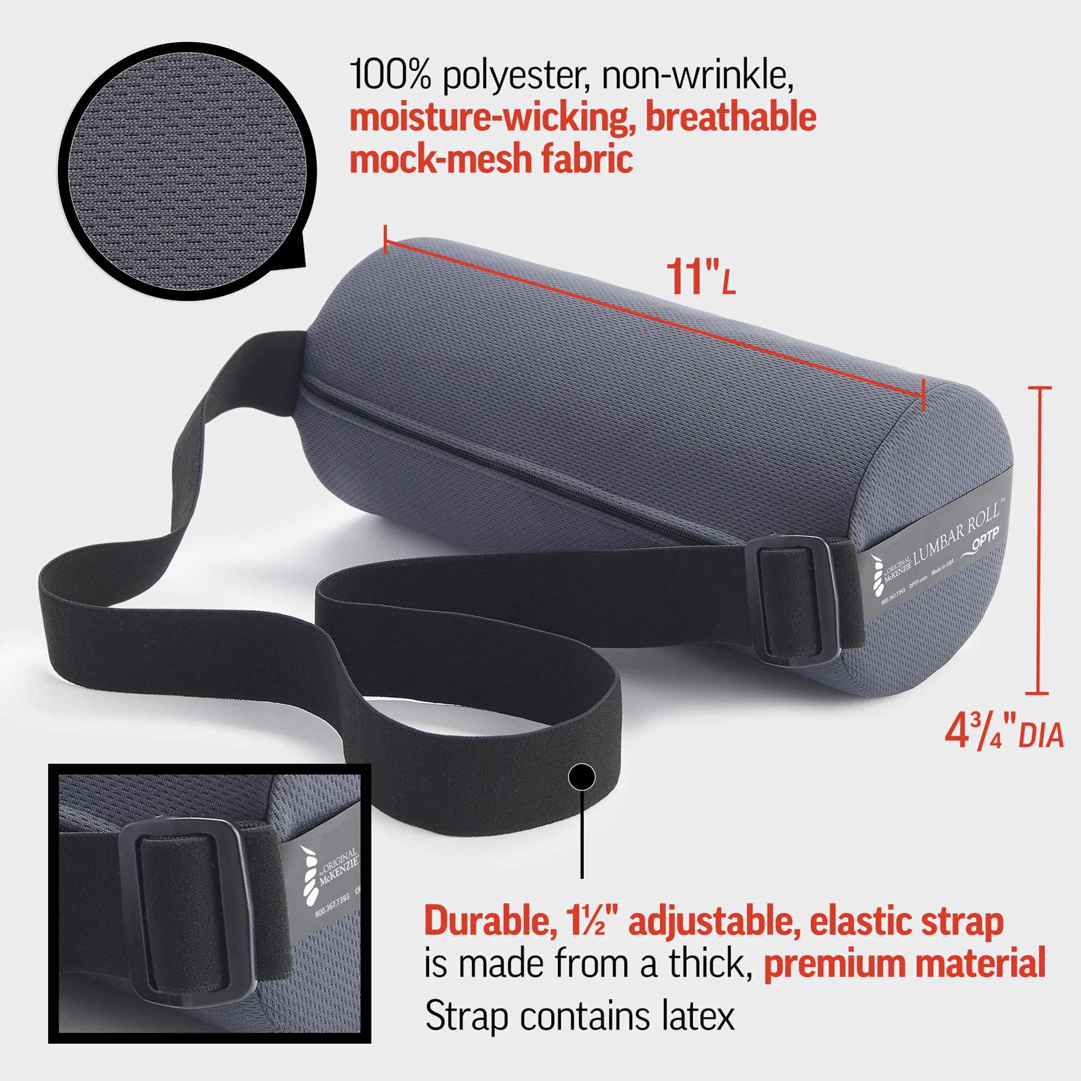 High-Quality: This lumbar back pillow is made from long-lasting foam with moisture-wicking, 100% polyester removable cover. The 1.5" elastic strap can be worn around the waist or adjusted as a back pillow for chair backs.