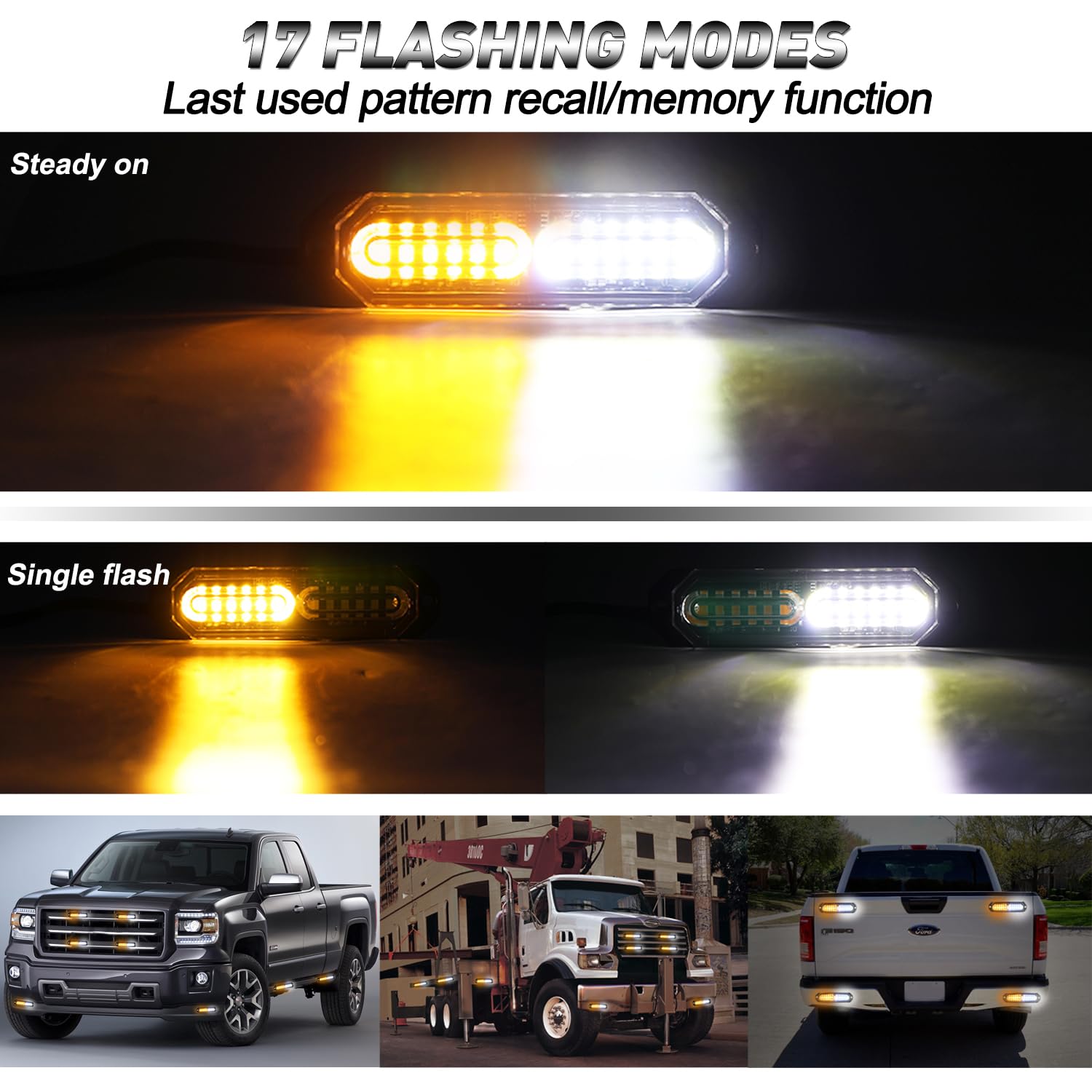 【SUPER VISIBILITY】ASPL 8Pcs 12LED Surface Mount Strobe Lights, each light has a total of 12 high-intensity Led chips. Use aluminum alloy housing + ABS magnifying lens for maximum brightness to ensure more effective warning to other vehicles. These strobe lights can be seen from hundreds of feet away.