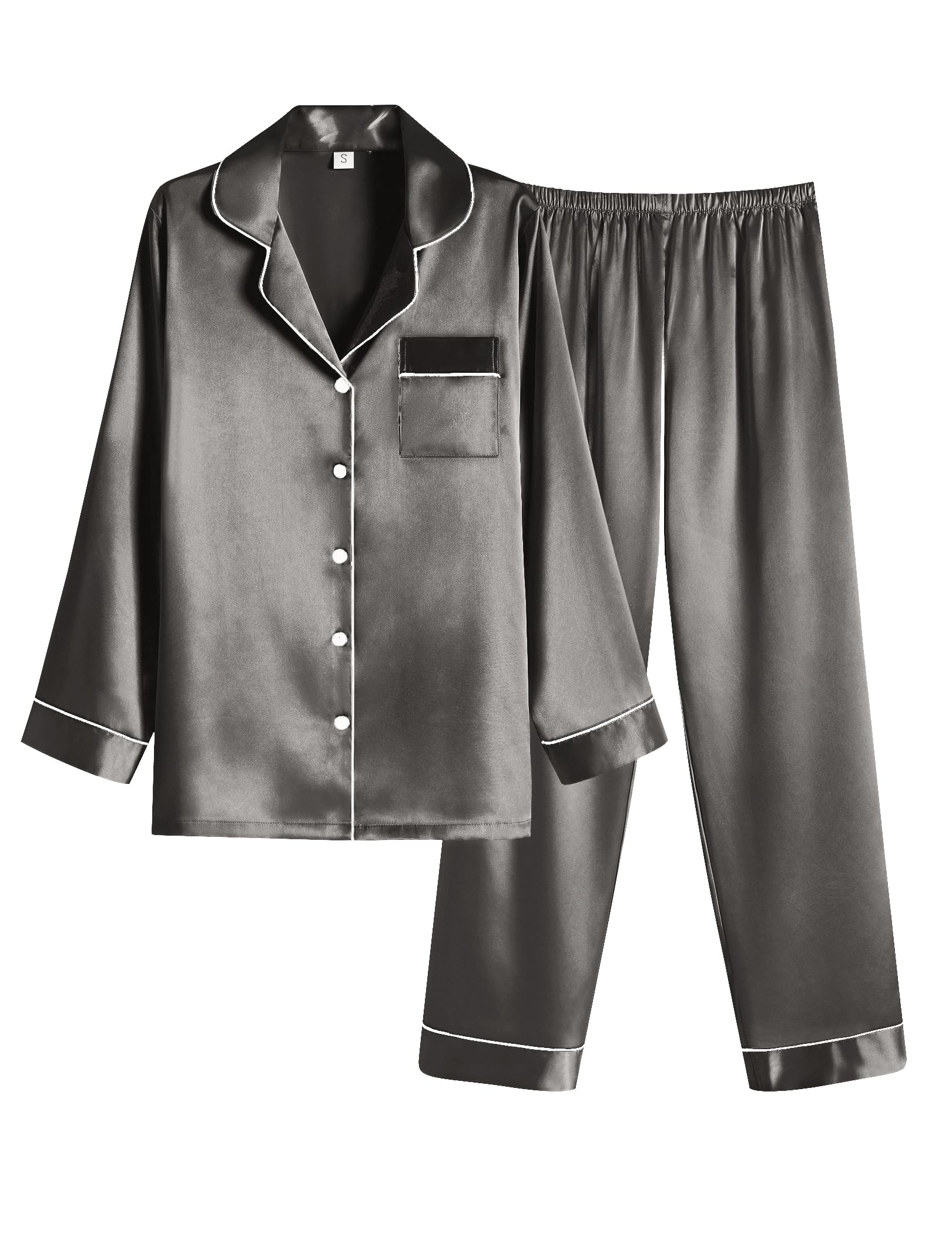MATERIAL:Satin pajama set is made of premium 95% Polyester+5% Spandex silk fabric,durableand,lightweight,breathable,skin-friendly,help you have a sound sleep.Not easy to wrinkle and fade,comfy to wear