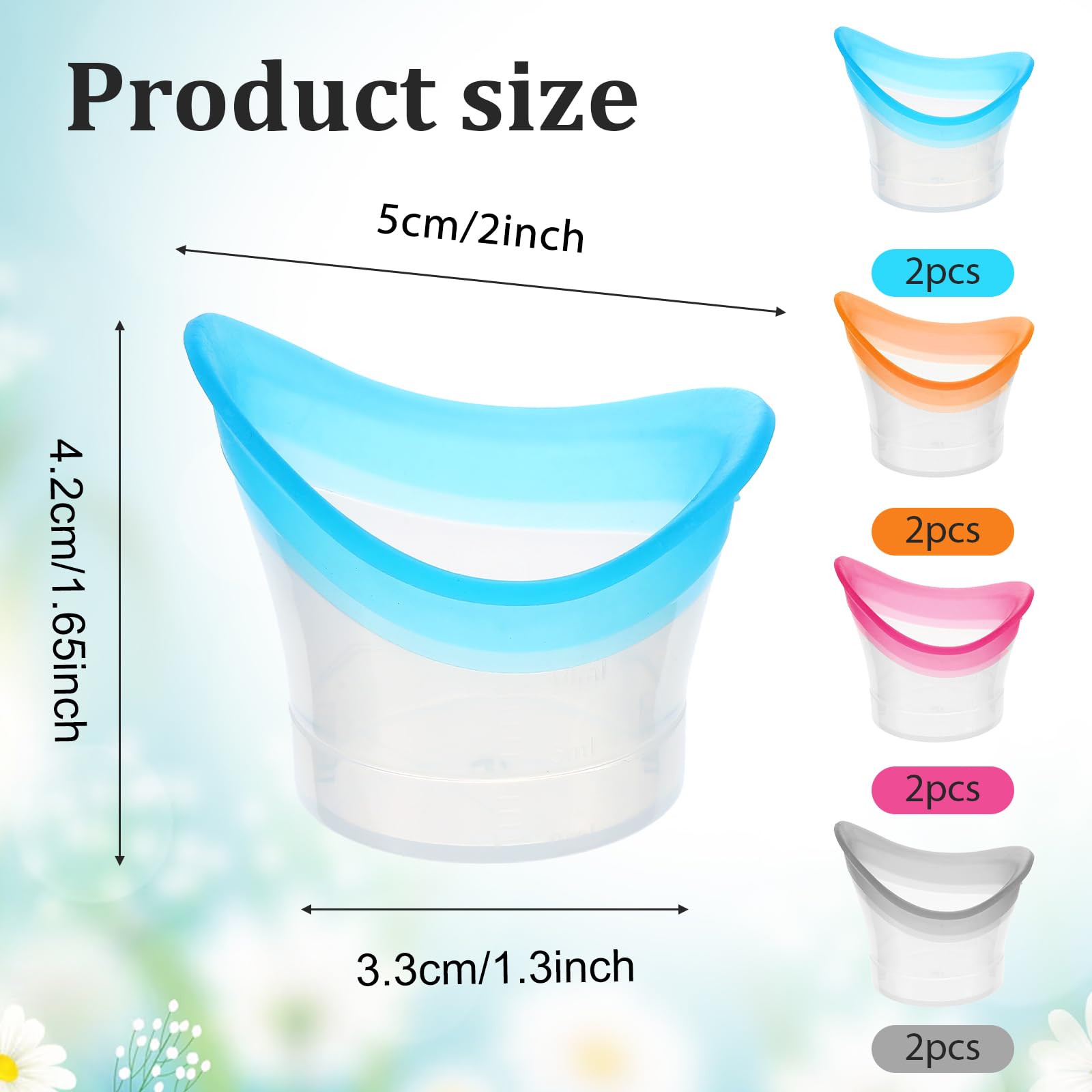 8pcs Eye Wash Cup Eye Wash Bath Kit Silicone Eyes Flush Cleaning Cups for Eyes Rinse Portable eye Cup eye Cleaner eyes Care Tool Cleaner for Quick Relief Tired eyes Refresh Clean Dust Makeup Irritants Main functions: To use, simply place the eyecup over your eyes while tilting your head forward. As you tilt your head back and move your eyeballs, the liquid will cover your eyes. Repeat this process for both eyes to relieve redness caused by wearing contact lenses for a long time Color: Pink, Blue, Gray, Orange Product size: 1.88 × 1.57 × 1.49 inches/4.8 × 4 × 3.8 cm Product includes: 2pcs × Pink, 2pcs × Blue, 2pcs × Gray, 2pcs × Orange