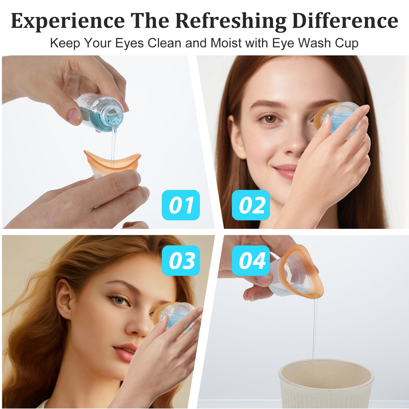 【Comfortable Design】The soft silicone edge of bath rinse cup provides a gentle and comfortable massage effect during use. Eye drops or saline can be filled in blink eye drops for dry eyes, a cooling eye kit helps keep eyes moist and clean, an eye rinse cup can effectively fight dryness, and a cup washer keeps your eyes refreshed and comfortable.