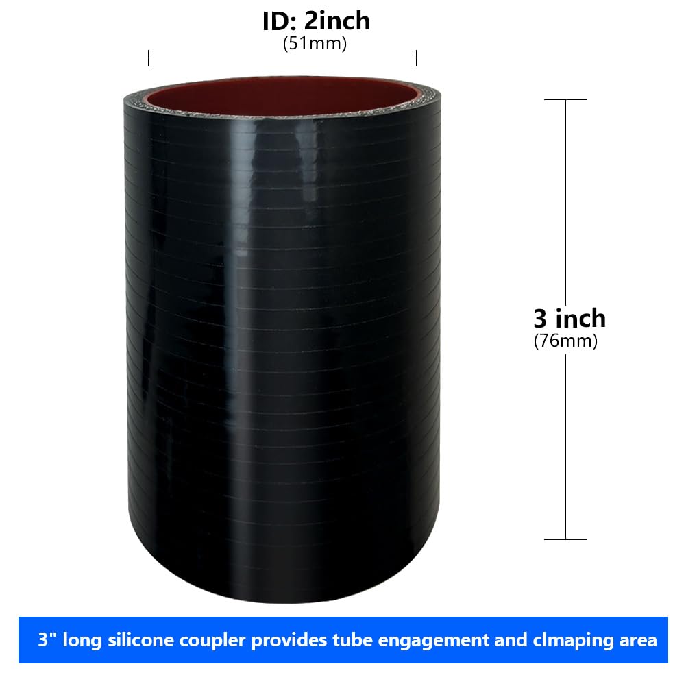 KDP Standard Straight Silicone Hose Coupler with 2 SS304 Worm Clamps 1.KDP Silicone Straight Hose Will be Sent to You with two Worm Clamy, You will Have no Need to Buy extra clamps. 2. KDP Straight Coupler Hose is Made a Standard Length of 3" (76.2mm) to Provide Proper Tube Engagement and Clamping area. 3.Thickness :5mm /.2" . KDP Hose Coupler is Made of New Silicone Material with 4 Ply Heat-resistant Embedded Fibers Reinforced, 4.Which is Perfect for Heavy Duty Applications.5.150 PSI Max Pressure Rating/Temperature rated to 350F °or 180C°. 5 .KDP Silicone Hose Coupler is Universal Application for Straight Connecting Intake pipes, Radiator pipes , Intercooler Pipes etc Notice: Oil or Fuel Will Reduce the Lifetime of the Silicone hose, Please Avoide Oil when Using Our Striaght Silicone Hose. We prepare the Worm Clamps So That You don't Need to Buy Extra clamps for Most of the Operating Environment.But If You Use It As a Turbo Charger Hose, It's Better to Lock it with T Clamp.