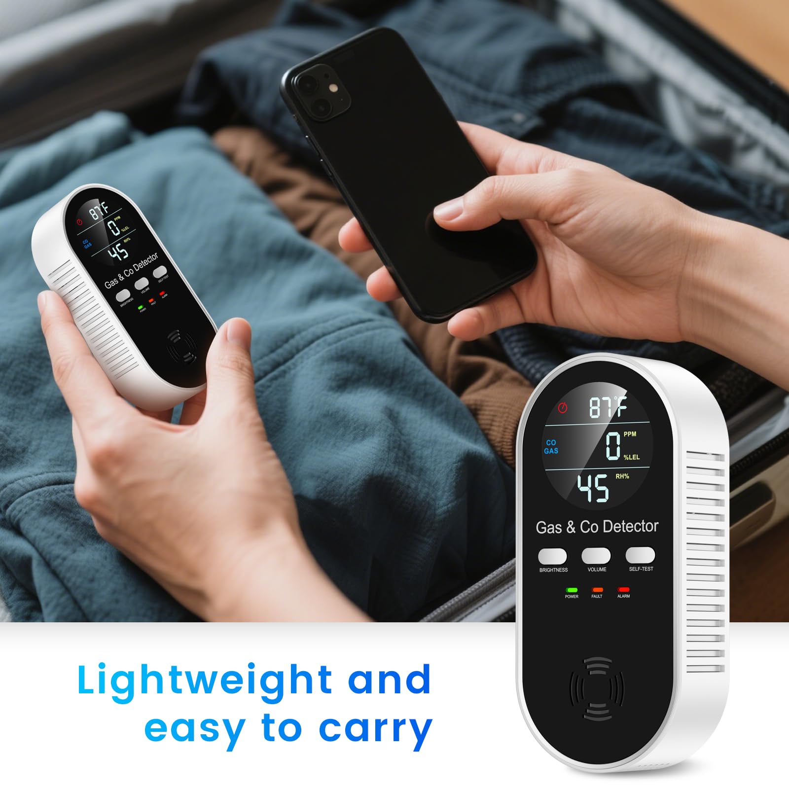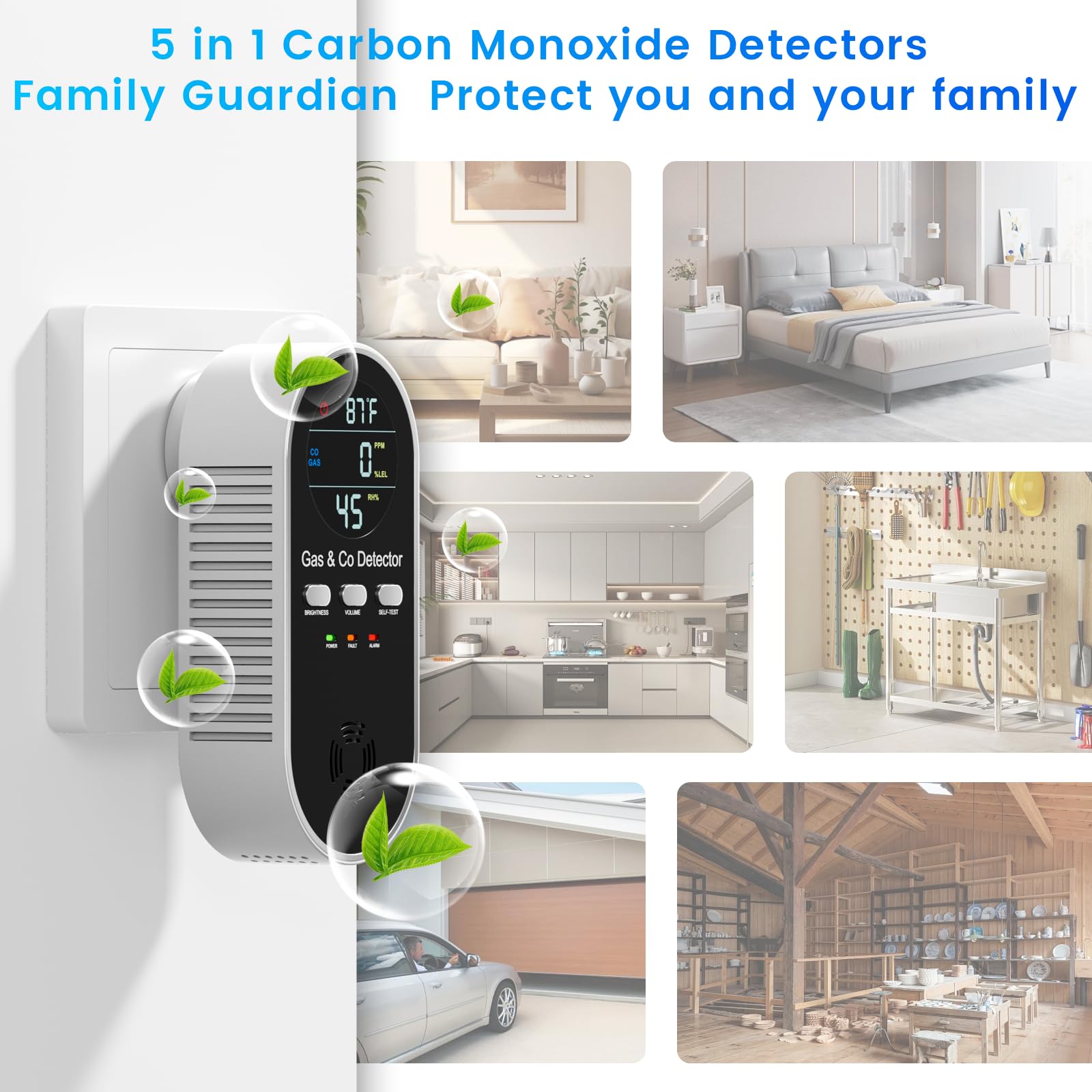 【5-In-1 detection 】Detects Carbon Monoxide, Flammable Gas, Temperature, and Humidity; Adjustable Light/Sound.
