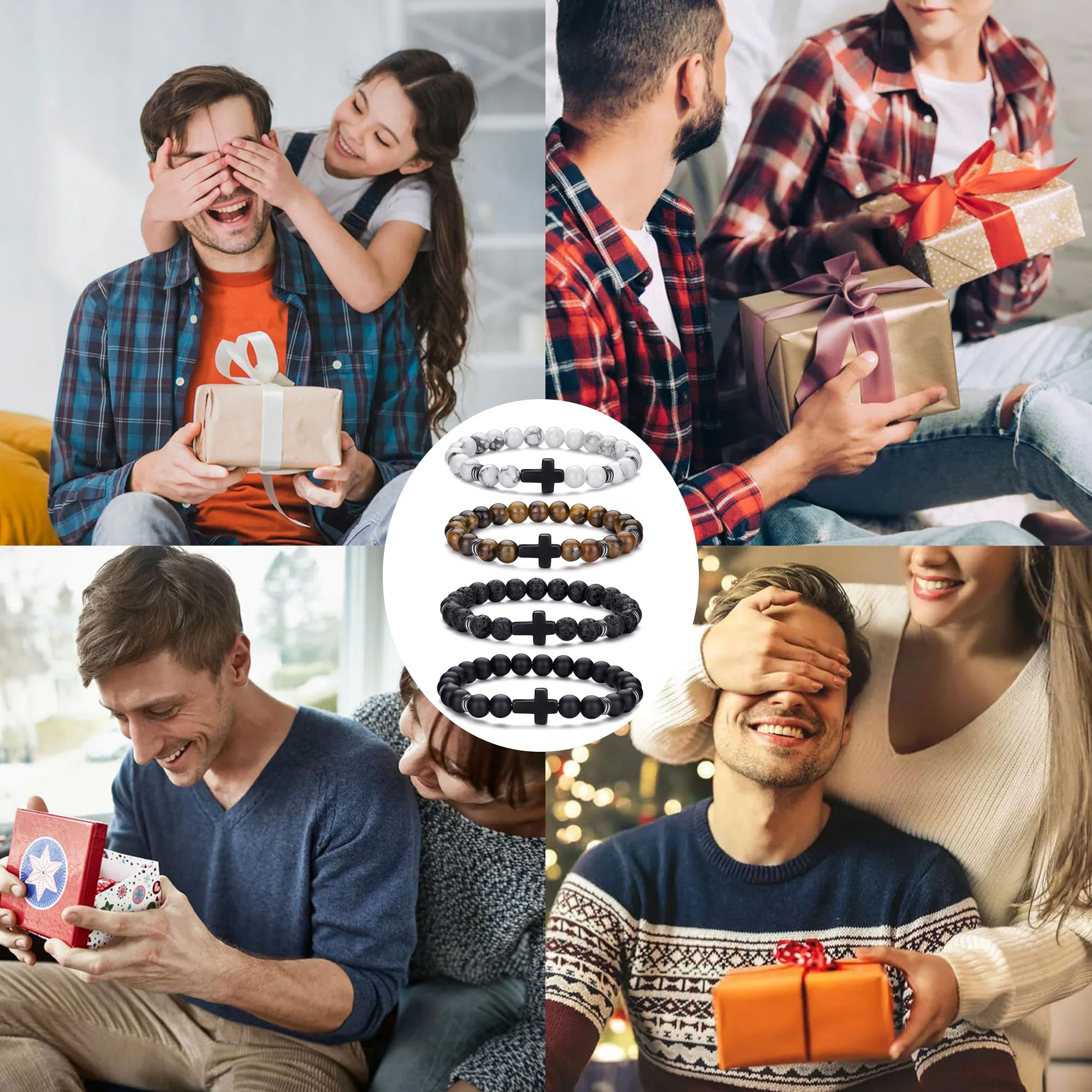 Mens Cross Bracelet:Cross bracelets for men,mens beaded bracelets,You will receive 4 mens cross bracelets ,mens beads bracelets made of Top Class Natural Stone and Each bracelet is handmade by a craftsman