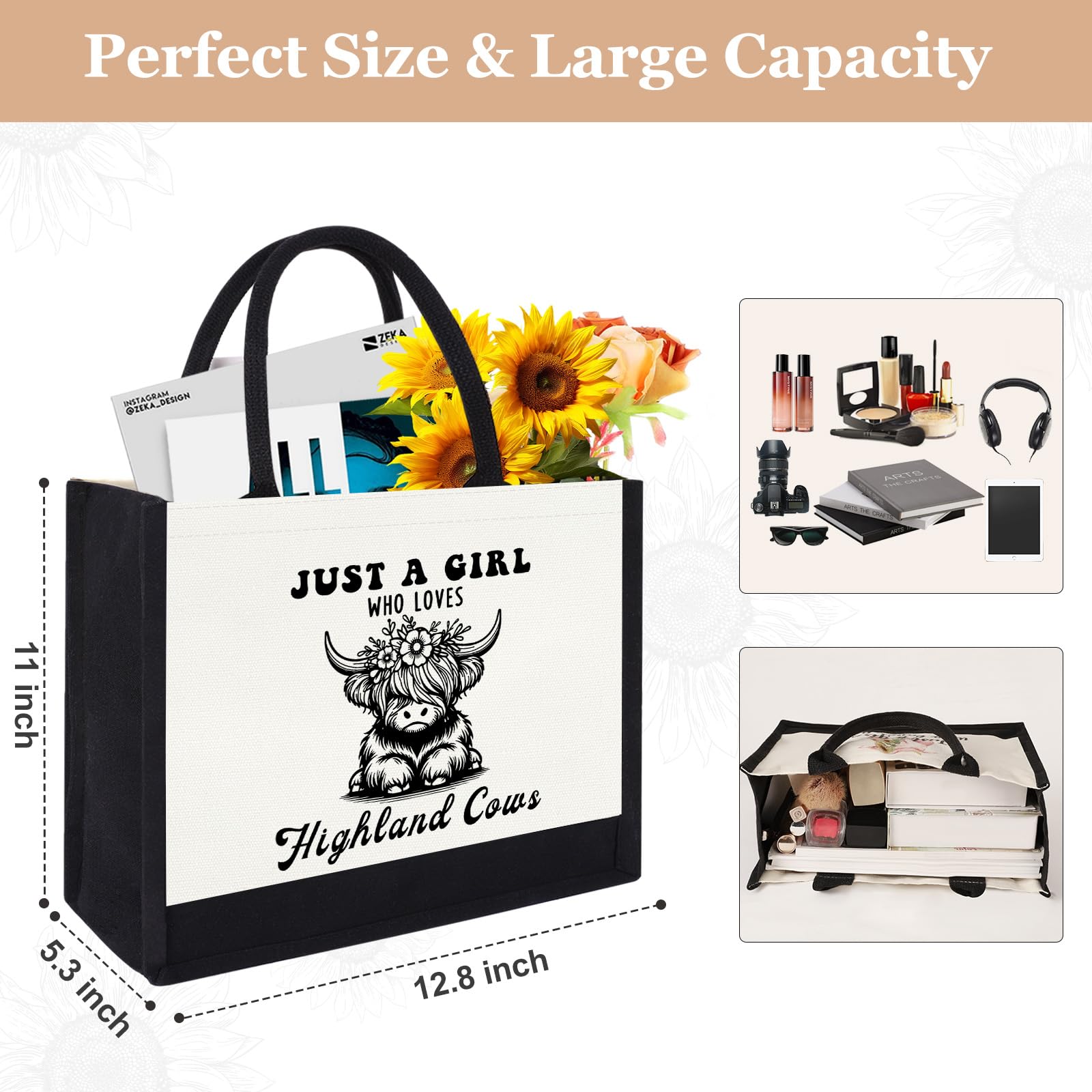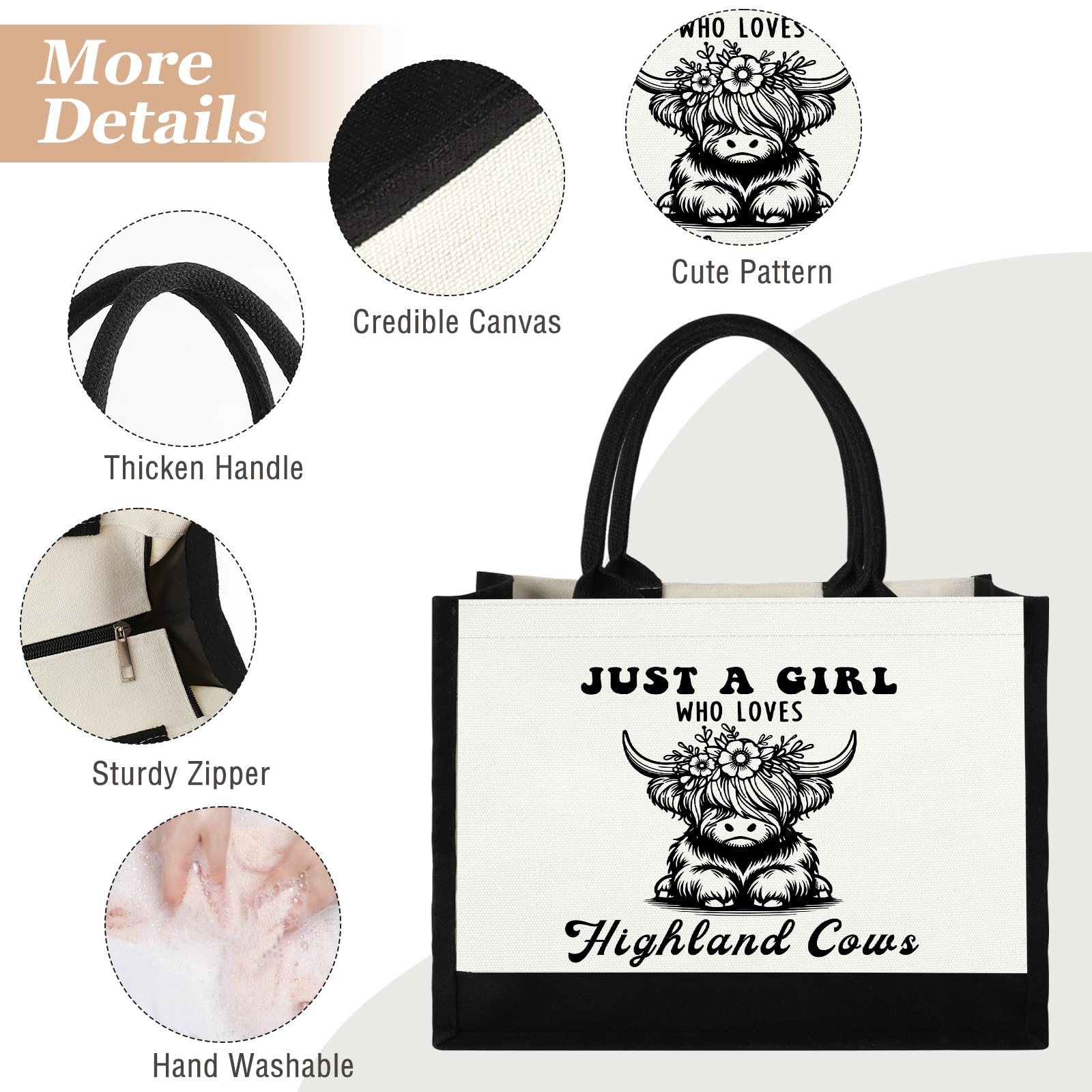 Unique Cow Lovers Tote Bag: Our women tote bag features a adorable highland printing, we use advanced printing technology to ensure that the prints on our tote bags are vibrant, long-lasting, and fade-resistant, even after multiple washes and uses. Best highland cow gift for cow lovers, suitable as a gift for best friends, sisters, mom, daughter, niece, coworkers, schoolmate and so on