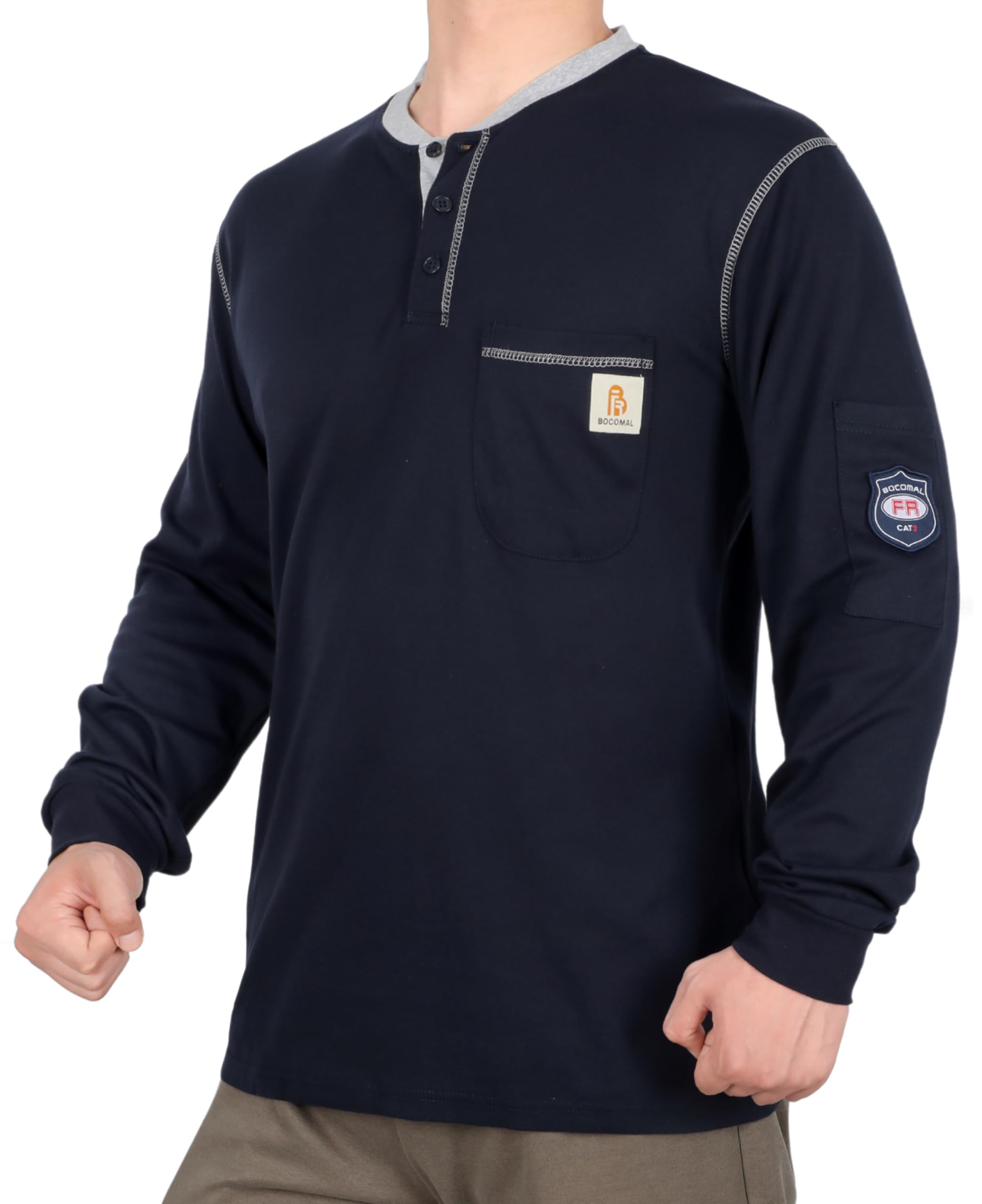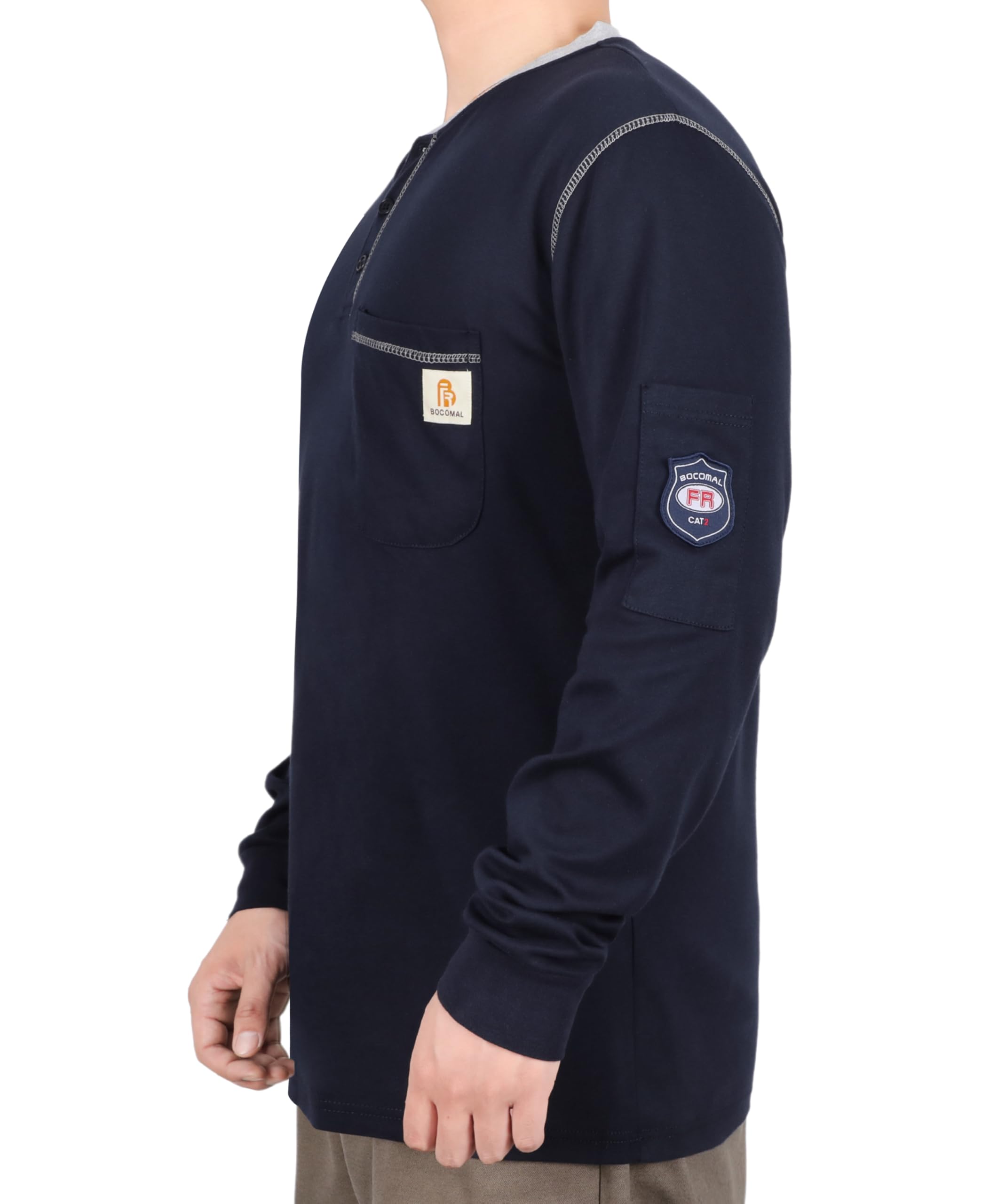 FR MATRIALS LIGHT WEIGHT:5.5OZ Cotton Knit FR Treated,FR Buttons,FR Sewing Threads!Clear FR Tag on arms and bottom front.More FR info On Neck Tag About UL Certification.We Attached A Small Sample Inside Package For Cunstomers Simple FR Try