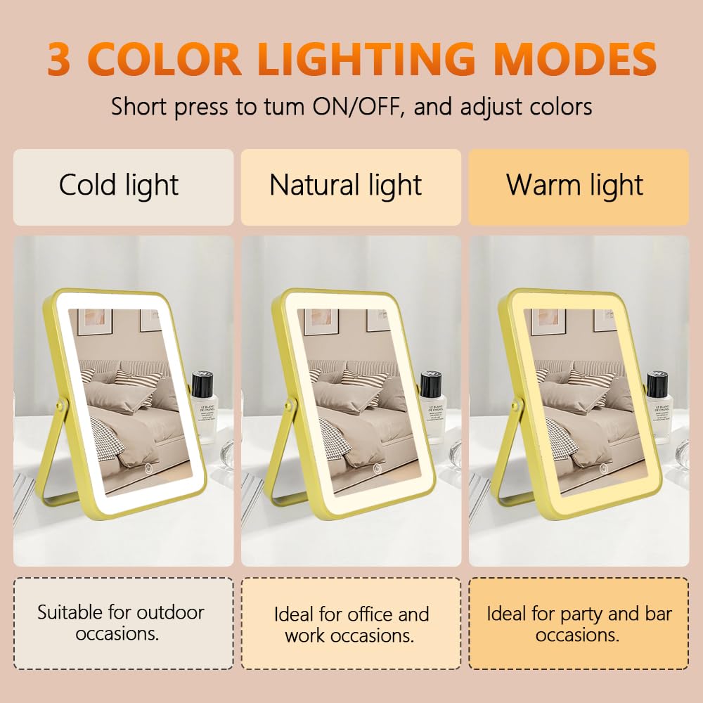 3 Adjustable Lighting Modes: Easily switch between warm, natural, and cool LED lighting to suit different makeup needs, ensuring accurate color representation under various environments.