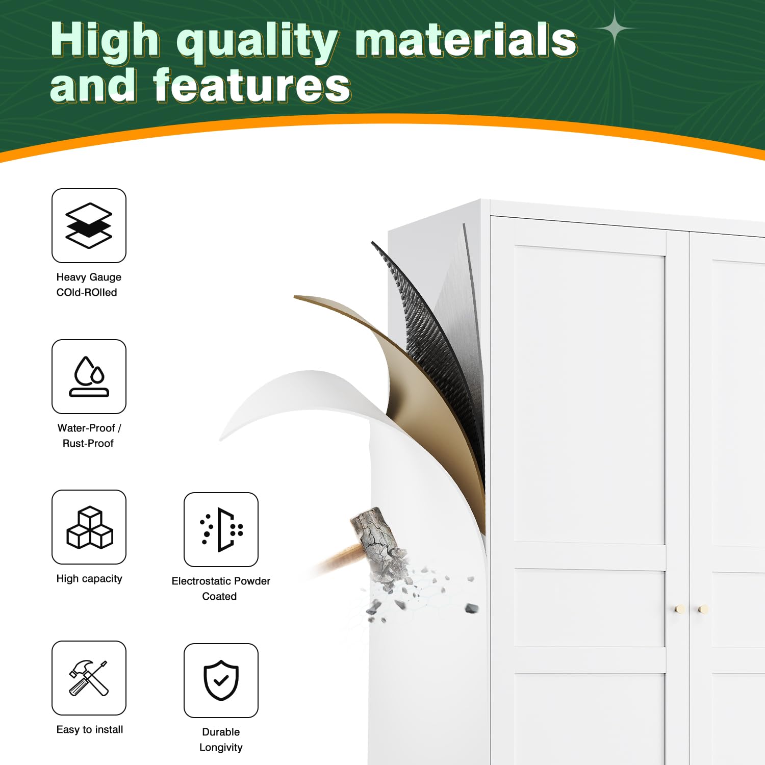Superior Materials : Our wardrobe is constructed from large thickened cold-rolled steel plates for exceptional strength and durability. The wardrobe is finished with an electrostatic powder coating, making it scratch resistant, wear resistant and easy to clean. This design is more durable than traditional wooden wardrobes.