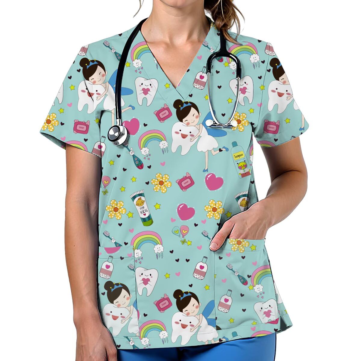 Occasion: These v neck short sleeve scrubs for women have a variety of printed colors, cartoons, animals, colorful, hearts, stars, and are perfect for home, festivals, theme parties, art crafts, doctors, nurses and professionals working in children's healthcare, animal healthcare and beauty care. At the same time, these basic womens tops can also be used as daily T-shirts women.