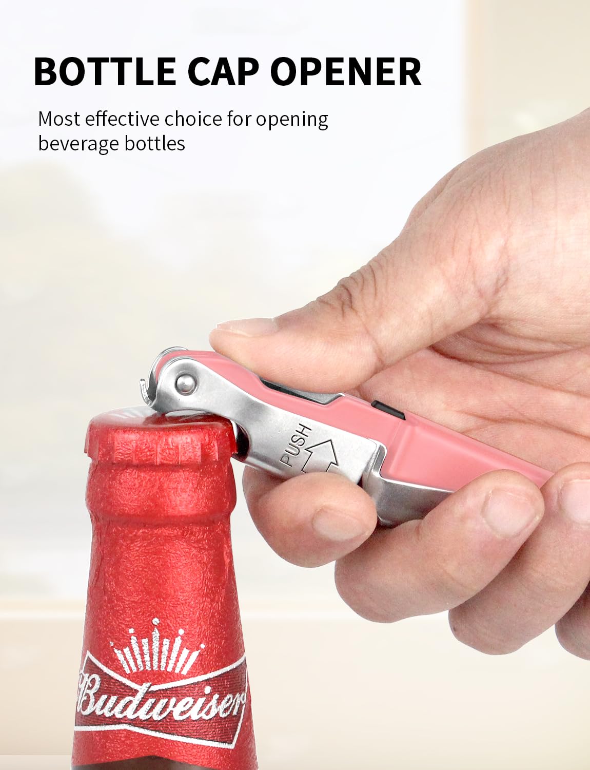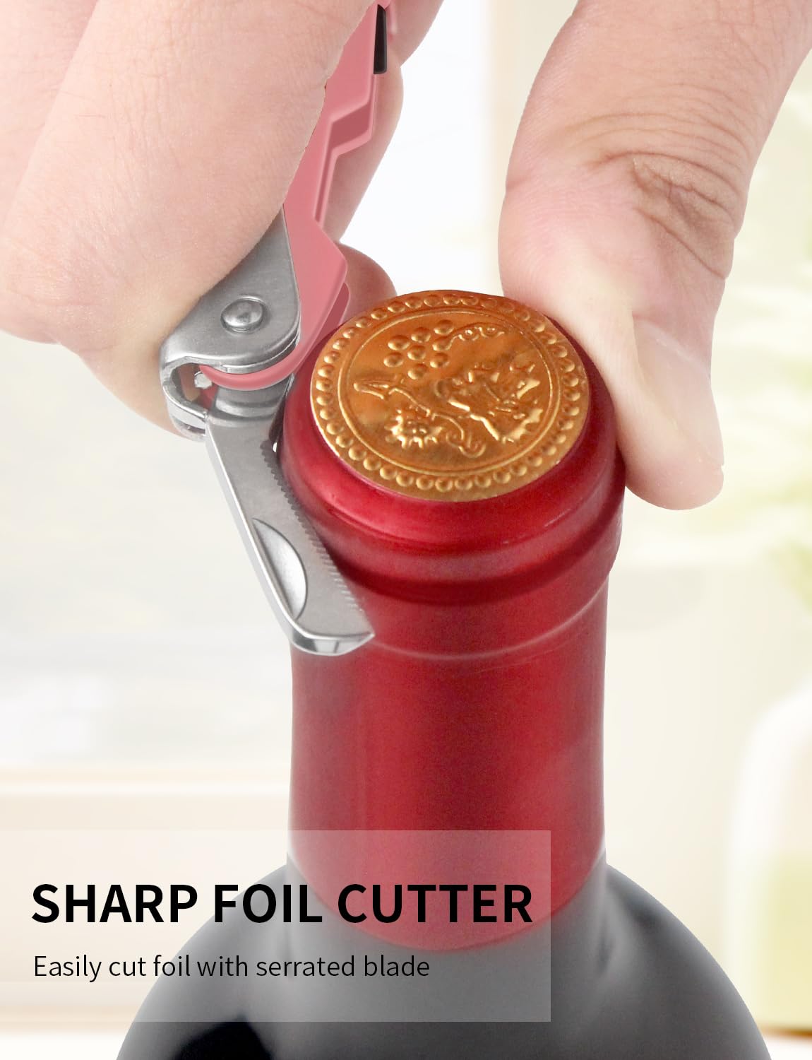 ✅【THE MULTI-TOOL MASTER FOR ALL BEVERAGES】CORKAS bottle opener goes beyond just uncorking wine! This versatile tool features a sharp serrated foil cutter to remove bottle seals and a built-in bottle cap opener. After cutting the foil, just pull open the lever arm, the knife will close automatically! Whether you're enjoying a glass of wine, a refreshing beer, or a bubbly soda, the CORKAS is your one-stop shop for effortless beverage opening.