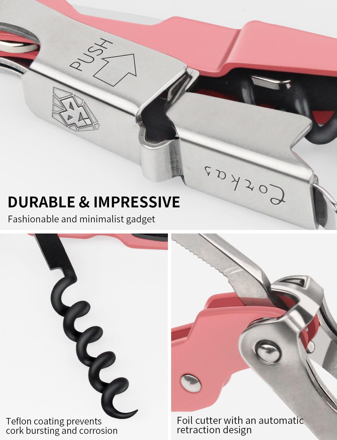✅【BUILT TO LAST, MADE TO IMPRESS】Crafted from high-grade, solid 430 stainless steel, the CORKAS wine opener boasts exceptional durability and a timeless design. The sleek, minimalist design adds a touch of sophistication to any table, while the real hand-assembled construction and a single-piece worm guarantees could withstand constant use and the occasional drop to ensure years of service. CORKAS is as beautiful as it is functional.