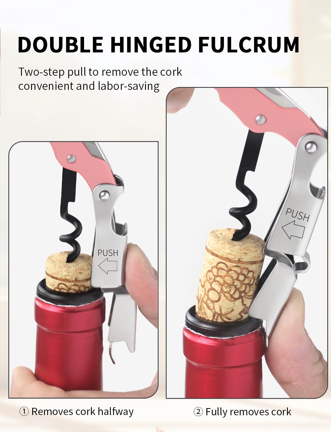✅【EFFORTLESS WINE EVERY TIME】Effortlessly glide through any cork with the CORKAS waiters corkscrew. The double-hinged fulcrum provides extra leverage for smoother extraction to ensure smooth, frustration-free uncorking. Its Teflon-coated worm could reduces friction and noise, easier to glide through corks, minimizing wear and tear, No more crumbled corks or wasted time – just perfectly extracted wine, ready to be enjoyed.